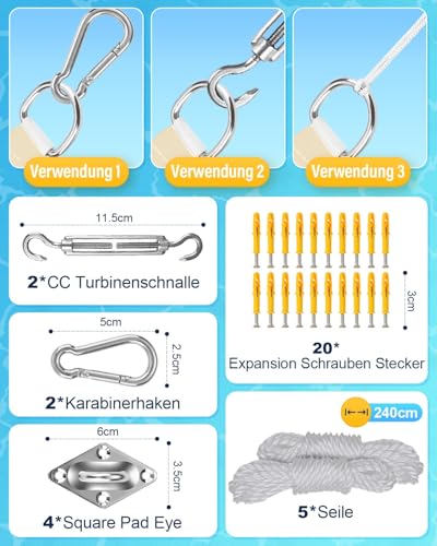 Endlich mehr Schatten im Garten! Dieses Sonnensegel in 2x3 m Größe besteht aus hochwertigem HDPE-Material und blockiert bis zu 98% der UV-Strahlen. Super praktisch: Es ist sowohl wasserdicht als auch atmungsaktiv - bei Regen bleibt's trocken, an heißen Tagen staut sich keine Hitze unter dem Segel. Die Ecken sind extra verstärkt, damit auch bei stärkerem Wind nichts reißen kann. Mitgeliefert werden Ösen und Befestigungsseile für eine einfache Montage. Egal ob über der Terrasse, im Garten, beim Camping oder als Sichtschutz am Pool - dieses Segel ist ein echter Alleskönner. Die Installation ist simpel, ohne Spezialwerkzeug schnell erledigt. Perfekt, um auch an heißen Tagen draußen entspannen zu können. Mach deinen Außenbereich noch gemütlicher!
