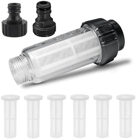 Schütze deine teuren Gartengeräte vor Schmutz und Kalk! Dieser praktische Wasserfilter für 3/4 Zoll Schläuche filtert zuverlässig Partikel und Sedimente aus dem Wasser. Im Set enthalten: 1 transparenter Filter (ABS+PET), 5 Ersatzfiltereinsätze und 2 schwarze Schnelladapter. Maximaler Druck: 175 psi. Das durchsichtige Gehäuse zeigt dir sofort, wann der Filter gereinigt werden muss. Einfach ohne Werkzeug zerlegen und unter fließendem Wasser reinigen. Passt an Hochdruckreiniger, Gartenpumpen, Bewässerungssysteme - überall dort, wo sauberes Wasser wichtig ist. Verlängert die Lebensdauer deiner Geräte und spart teure Reparaturen. Ein Muss für jeden Gartenbesitzer!