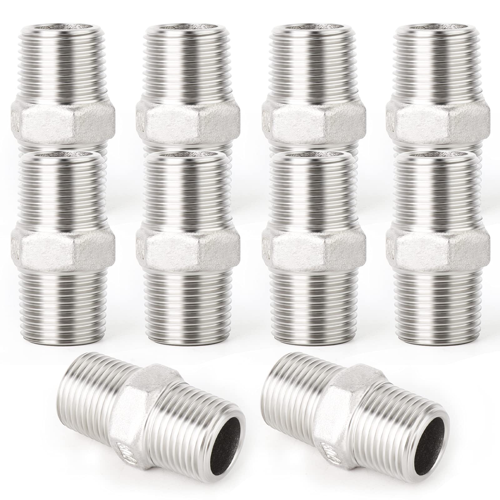 Pass auf: Diese robusten Edelstahl-Verschraubungen sind echte Allrounder für deine Rohrinstallationen! Hergestellt aus hochwertigem 304er Edelstahl, sind sie absolut rostfrei und halten Temperaturen von -50°C bis 120°C problemlos stand. Mit ihrem präzisen 3/4\ BSP-Gewinde passen sie zu den meisten handelsüblichen Rohrverbindungen. Einfach das Gewinde mit Teflonband umwickeln, reinschrauben - fertig! Der Arbeitsdruck von bis zu 2 MPA ist mehr als ausreichend für die meisten Haushaltsanwendungen. Ob für Wasserleitungen, Luftsysteme oder andere Medien - diese Verbinder machen einfach keine Probleme. Wichtig: Nicht für Trinkwasser verwenden und vor starken Chemikalien schützen. Die 100mm Länge gibt dir genug Spielraum für flexible Installationen. Kein Gefummel mit komplizierten Werkzeugen - mit einer Zange und etwas Dichtband bist du schon startklar. Perfekt für Heimwerker, die Wert auf Qualität und Langlebigkeit legen!