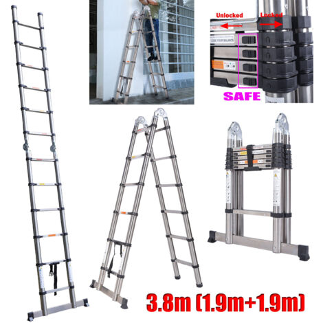 Teleskopleiter 3,8m Aluminium - Klappbare Leiter EN131 Zertifiziert, 150kg Belastbar