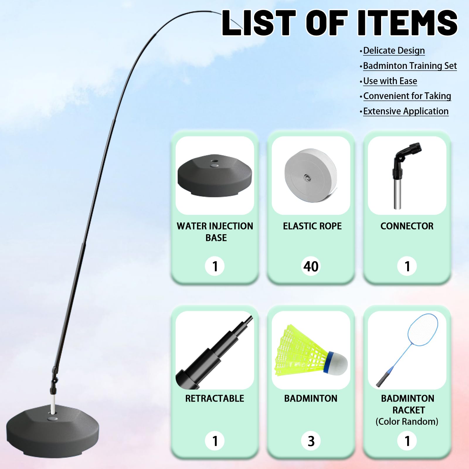 Badminton Trainer Set Mit 3 Bällen & Elastischen Seilen - Solo Training Für Zuhause & Draußen