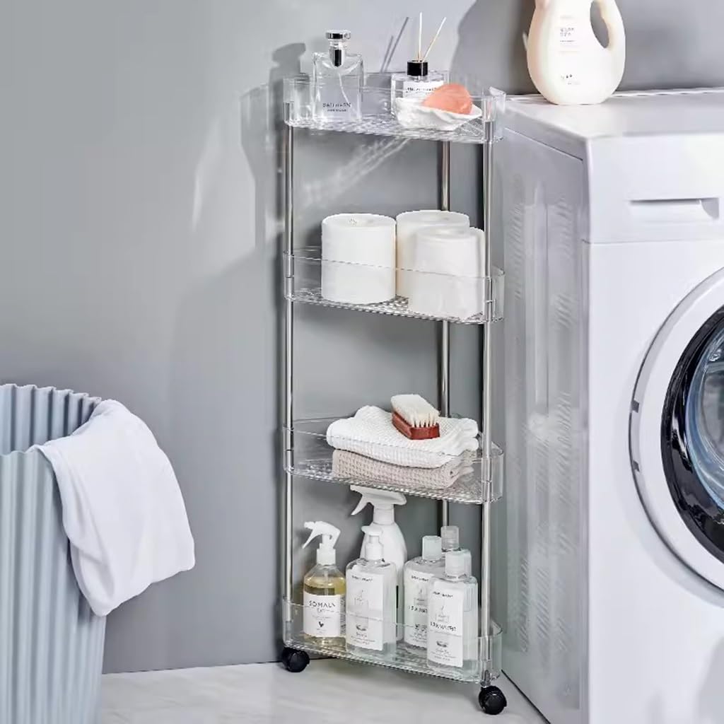WODFARR Rollwagen Mit 3 Ebenen | Transparenter Aufbewahrungswagen Für Küche, Bad & Büro