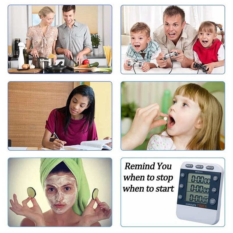 Lanko Digitaler Küchentimer 3 Kanäle - Großes Display Mit Aufwärts/Abwärts Zählfunktion