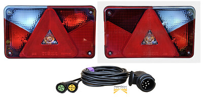 Alles dabei für deinen Anhänger! Dieses Aspöck Multipoint 3 Leuchten-Set ist komplett mit linken und rechten Leuchten, Kennzeichenleuchten, Nebelleuchte und Rückfahrscheinwerfer. Das 5 Meter lange Hauptkabel ist 13-polig (8 Pole belegt) und hat Bajonettverschluss. Alle Glühlampen sind schon montiert - einfach anschließen und fertig! Hochwertige Verarbeitung, langlebig und robust. Perfekt für Heimwerker und Profis. Einfache Installation spart Zeit und Nerven. Ideal für langfristige Nutzung an deinem Anhänger. Einfach bestellen, einbauen und sich über volle Beleuchtung freuen! Damit bist du sicher und legal unterwegs.