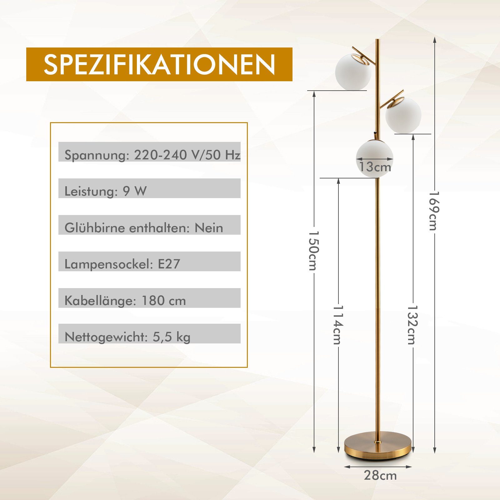 COSTWAY Stehlampe Mit 3 Regalen & LED-Beleuchtung - Holzoptik Mit Fußschalter