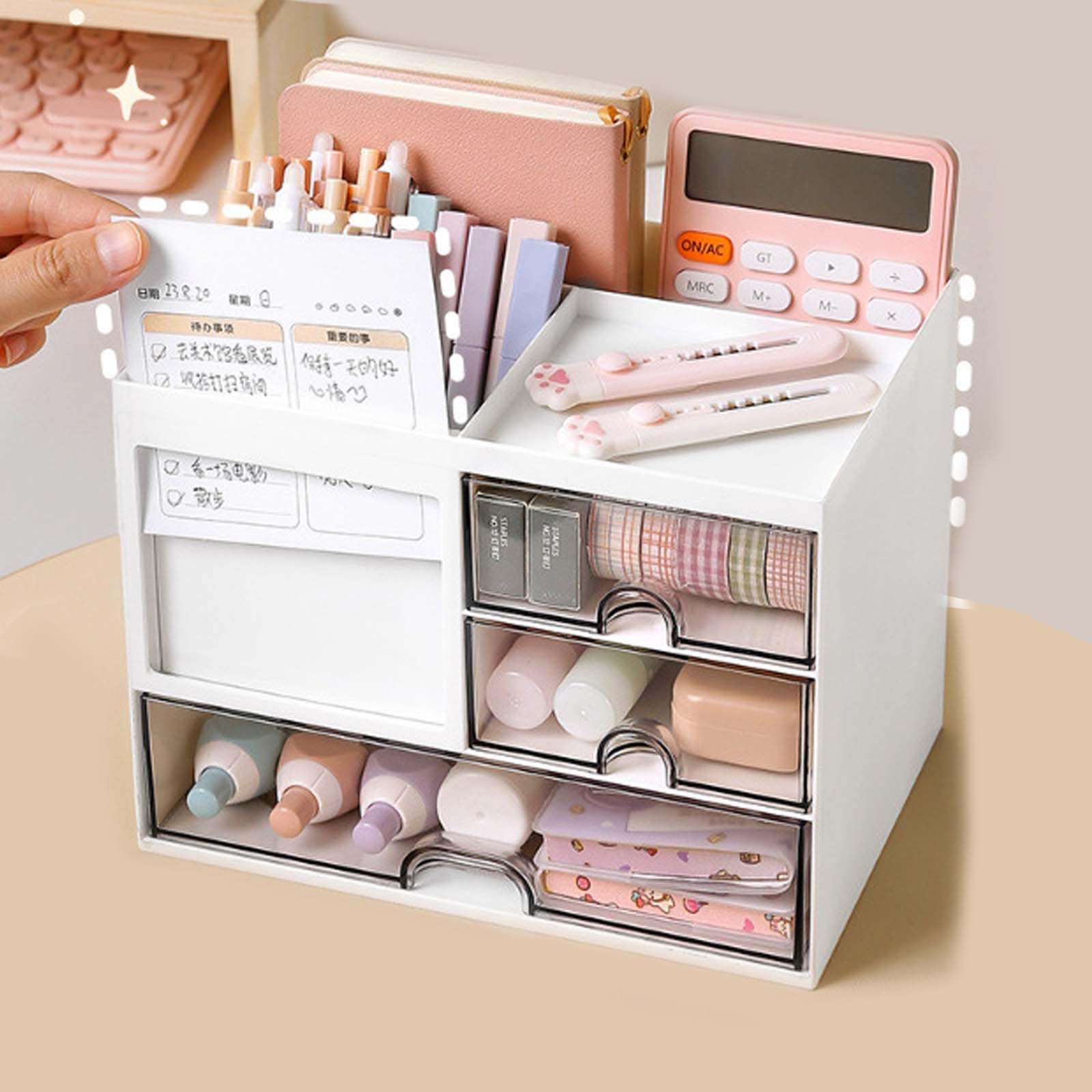 DoocliB Schreibtisch Organizer Weiß - 3 Schubladen Für Stifte & Bürobedarf