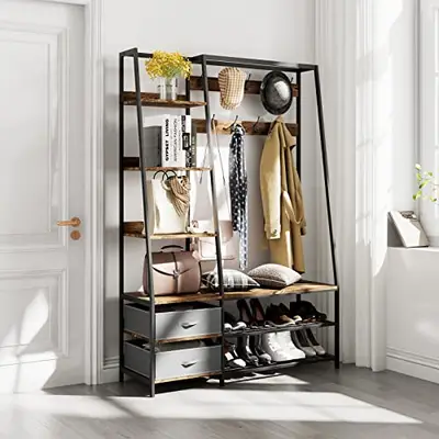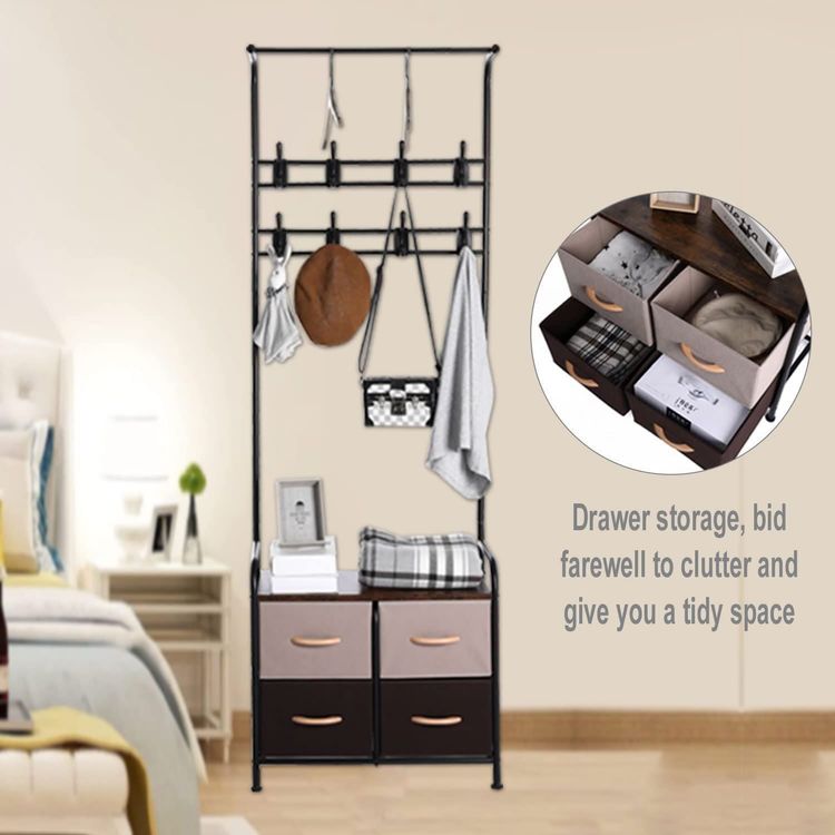 COSTWAY Garderobenständer 176cm Mit 3 Schubladen - Industriell Braun Für Flur