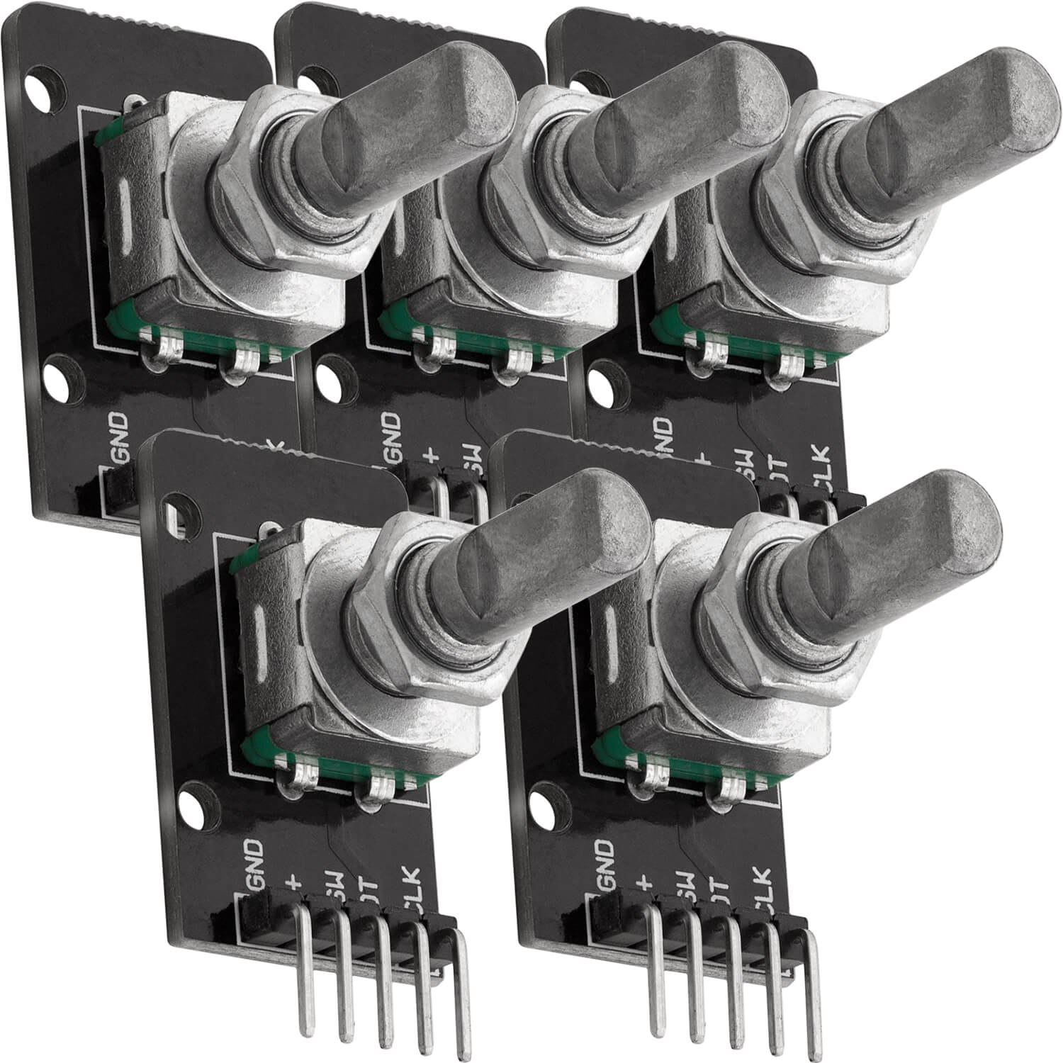 Super praktische Rotary Encoder für deine Elektronik-Projekte! Dieses Set enthält 3 KY-040 Module mit Drehgeber und Druckknopf. Läuft mit 5V, hat 20 Ziffern und 5 Pins. Du kannst nicht nur drehen, sondern auch den Knopf drücken - perfekt zum Zurücksetzen oder Bestätigen. Ideal für Automobilelektronik, Multimedia, Smart Home oder medizinische Geräte. Steuere damit Schrittmotoren, Servos oder digitale Potentiometer. Einfach anzuschließen und sofort einsatzbereit. Für Arduino, Raspberry Pi und andere Mikrocontroller. Mach deine Projekte noch interaktiver!