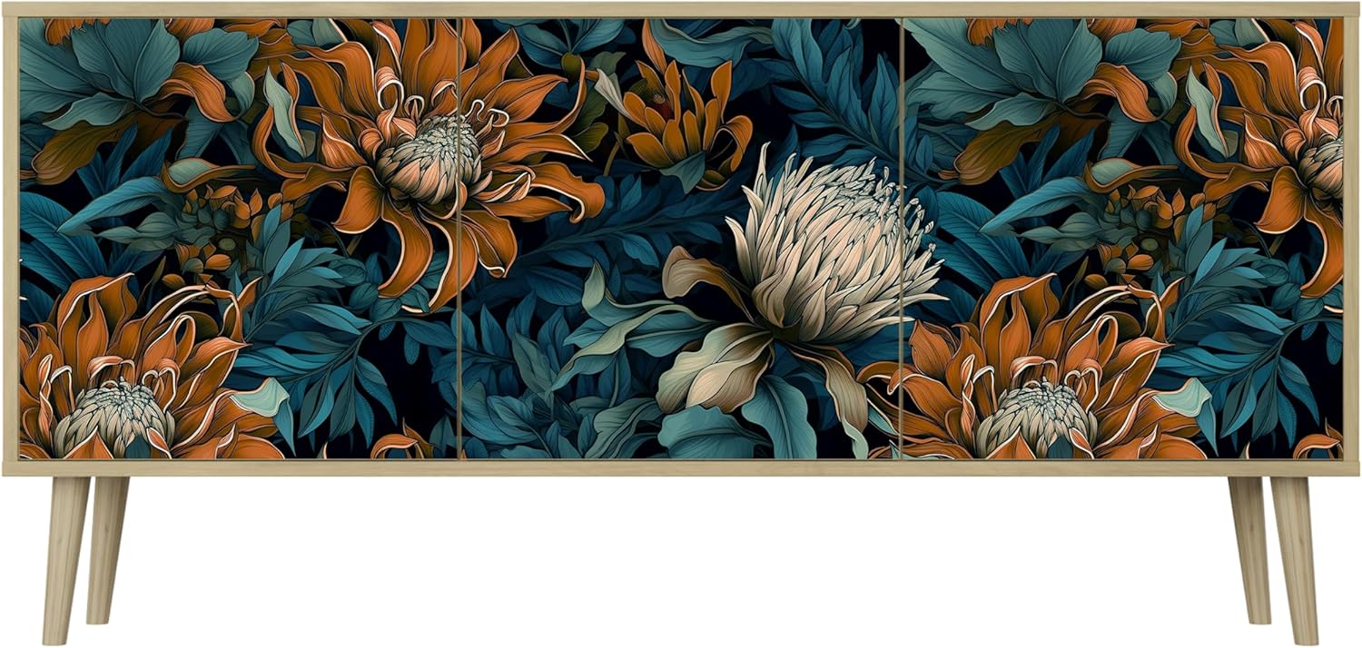 Diese Kommode ist ein echter Allrounder für dein Zuhause! Im modernen Riva-Eiche Design passt sie perfekt in Flur, Wohnzimmer oder Schlafzimmer. Mit 164,5 x 57,5 x 42 cm bietet sie jede Menge Stauraum für alle möglichen Kleinigkeiten. Die 3 grifflosen Türen öffnen sich ganz easy per Klick-System - sieht super clean aus! Drinnen findest praktische Regale für Kabel, Konsolen oder Ladegeräte. Die 20 cm hohen Beine machen die Kommode nicht nur eleganter, sondern erleichtern auch das Putzen darunter. Als TV-Schrank oder für Deko macht sie ebenfalls eine gute Figur! Einfache Montage mit verständlicher Anleitung. Tipp: Nach dem Auspacken kurz lüften lassen, dann verfliegt der 'Neugeruch' schnell. Ein Möbelstück das wirklich jeder braucht!