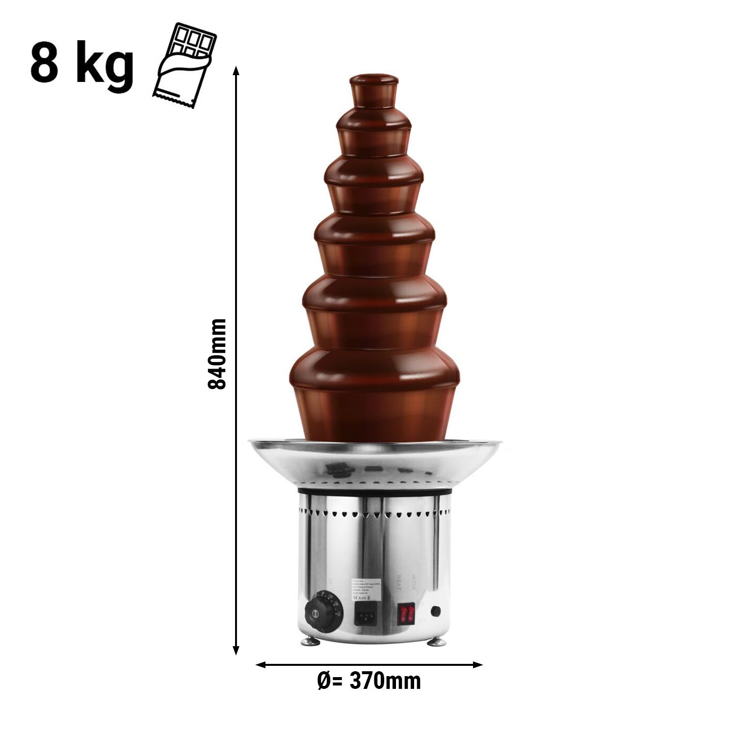 Deine Party wird zum absoluten Highlight mit diesem fantastischen Schokoladenbrunnen! Der 3-stöckige Edelstahl-Brunnen verwandelt jede Feier in ein unvergessliches Erlebnis. Einfach Schokolade schmelzen, Knopf drehen und schon fließt die leckere Schokolade in wunderschönen Kaskaden!