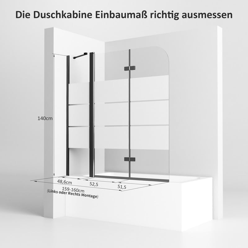 Duschwand Für Badewanne 140x140cm - 3-teilig Faltbar Mit ESG-Sicherheitsglas