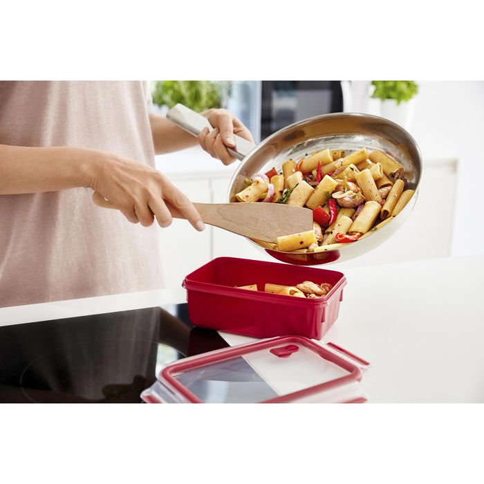 Kennst du das auch? Kaum Zeit zum Kochen, aber trotzdem Lust auf was Selbstgemachtes? Mit dem Emsa Micro Family Set wird die Mikrowelle dein bester Freund! Die drei praktischen Behälter sind perfekt zum Auftauen, Aufwärmen und sogar zum Kochen in der Mikrowelle. Aus robustem, BPA-freiem Material, das absolut geruchs- und geschmacksneutral ist. Du kannst sie auch problemlos in den Kühl- oder Gefrierschrank stellen - super für Meal Prep! Nach dem Essen einfach in die Spülmaschine und sie sind blitzsauber. Durch das stapelbare Design sparst du in der Küche jede Menge Platz. Das weiße Design mit roten Akzenten sieht dabei noch richtig modern aus. Perfekt für Singles, Paare oder kleine Familien - damit wird jeder Tag ein bisschen einfacher und leckerer!