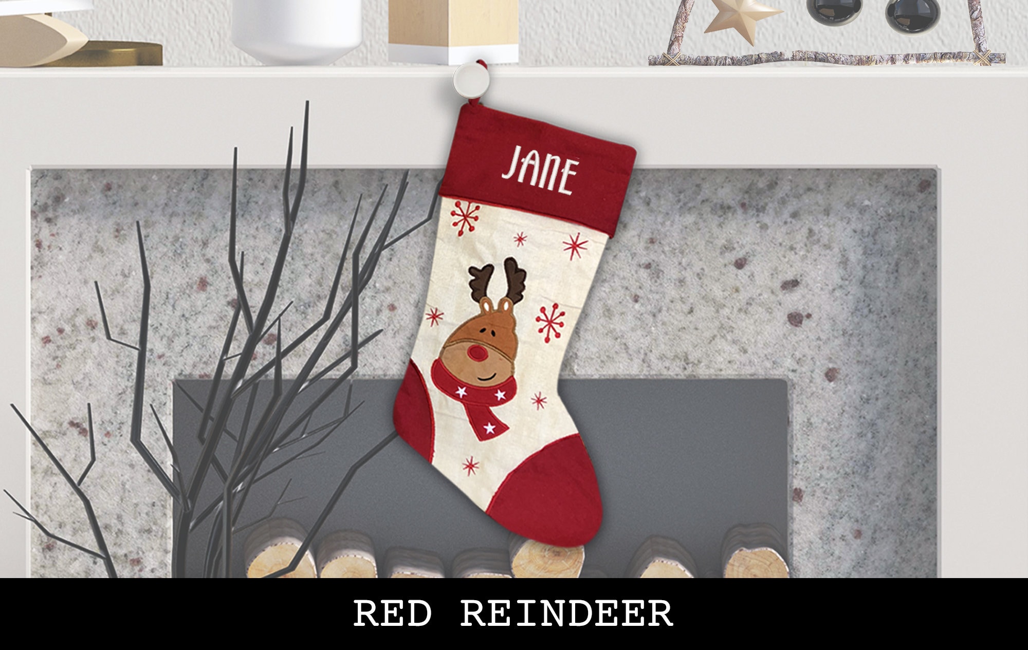 Weihnachtsstrümpfe Set 3-teilig - Rote Traditionelle Strümpfe Santa Rentier Schneemann