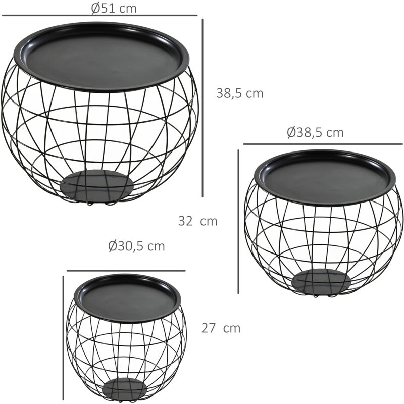 HOMCOM Couchtisch Set 3-teilig Rund - Laternen Design Mit Stauraum | Beistelltische Für Wohnzimmer Schwarz