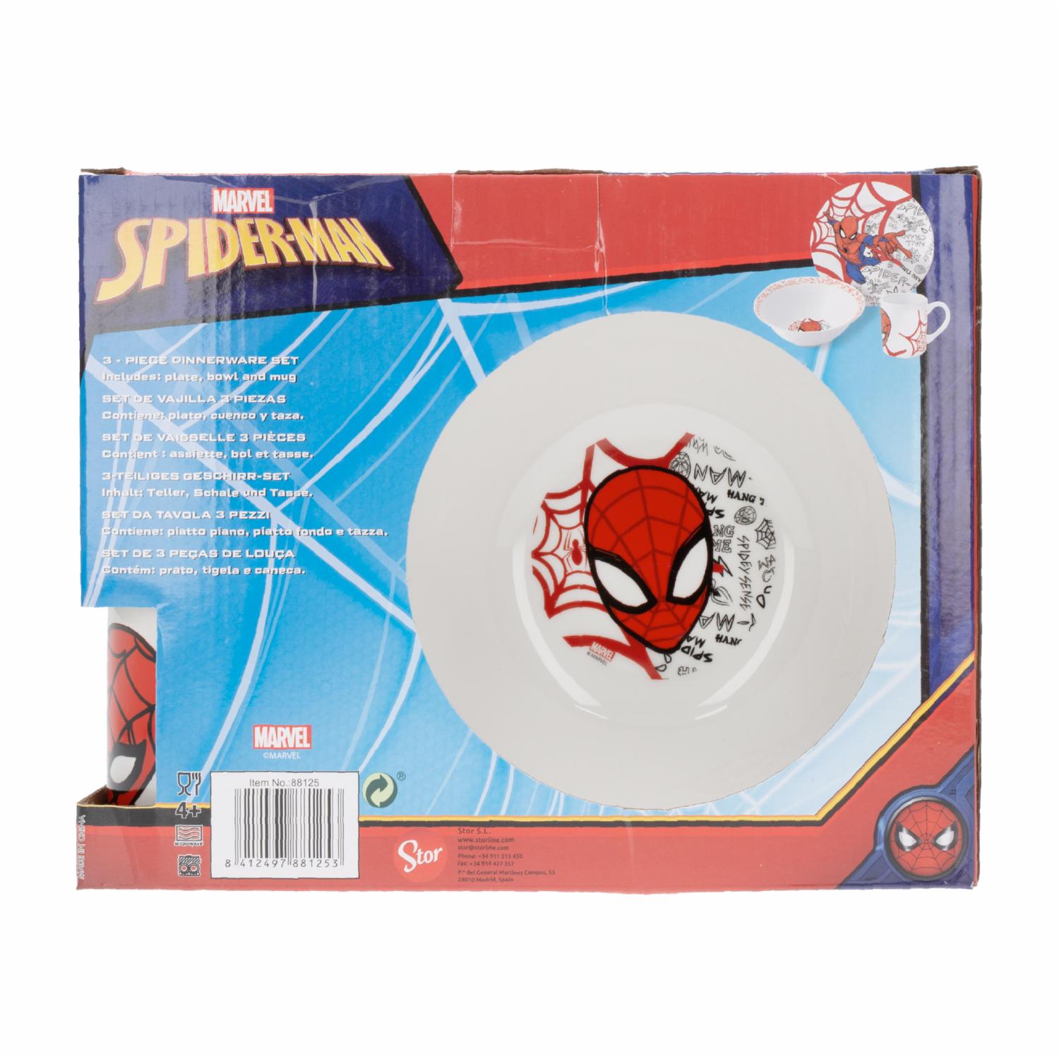 Stor MELAMIN Geschirr Set 3-teilig | Spiderman Design | Schüssel, Teller, Tasse 240ml