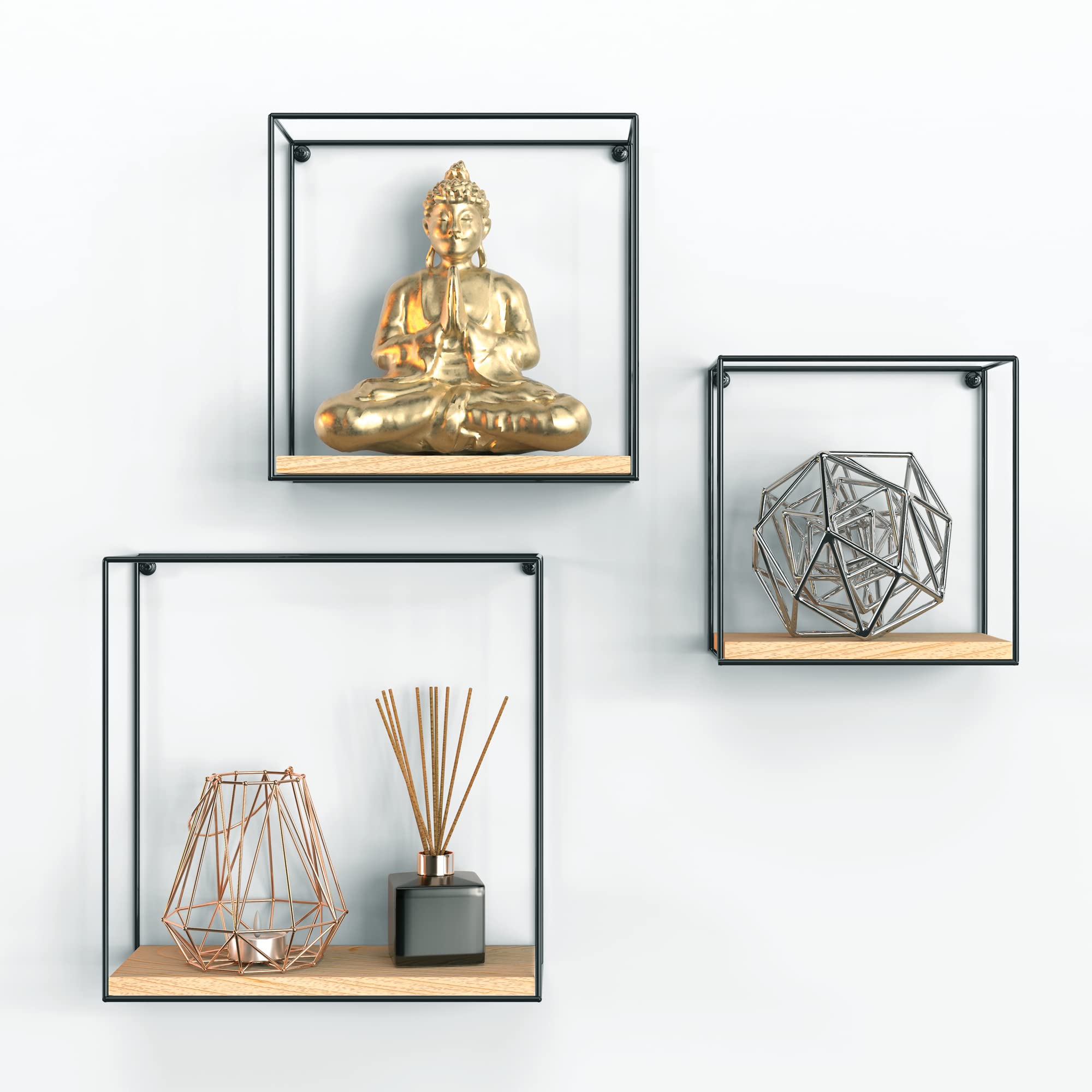 Hey, diese Berlinlodge Wandregale sind echt der Hammer! Das 3er-Set kombiniert schwarzes Metall mit warmer Bambus-Optik - total im Trend liegend. Perfekt für alle, die modernes Industrial-Design mit natürlichem Charme lieben. Die drei verschiedenen Größen (32x32x12cm, 27x27x12cm, 22x22x12cm) kannst du super flexibel kombinieren - ob in der Küche für Gewürze, im Bad für Kosmetik oder im Wohnzimmer für Deko. Jedes Regal hält bis zu 15kg aus und das Befestigungsmaterial ist schon dabei. Einfach montieren und sofort deine Wände aufwerten! Die pulverbeschichteten Metallrahmen sind kratzfest und die Bambusplatten sehen einfach klasse aus. Egal ob du Ordnung schaffen oder einfach nur stylisch dekorieren willst - mit diesen Regalen machst du nichts falsch. Und das Beste: Sie kommen schon fertig montiert - du musst sie nur noch aufhängen!