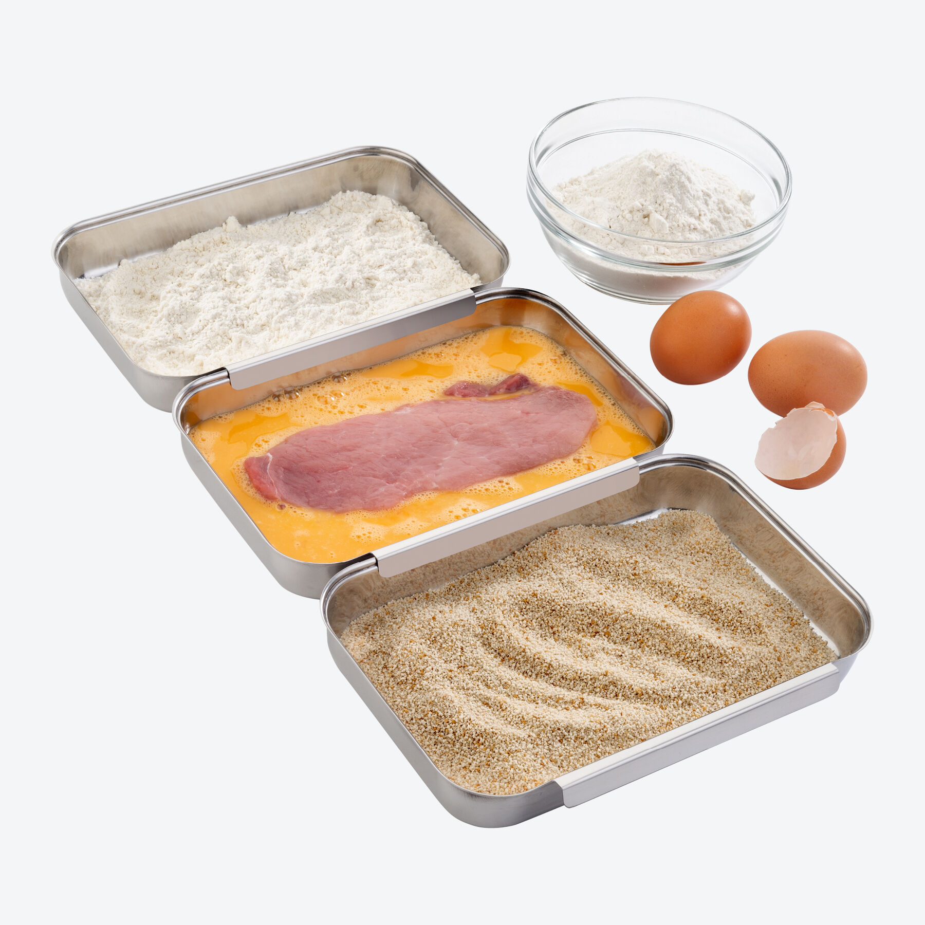 CEWROM 3-teiliges Panierschalen Set Edelstahl - Stapelbare Panierstraße