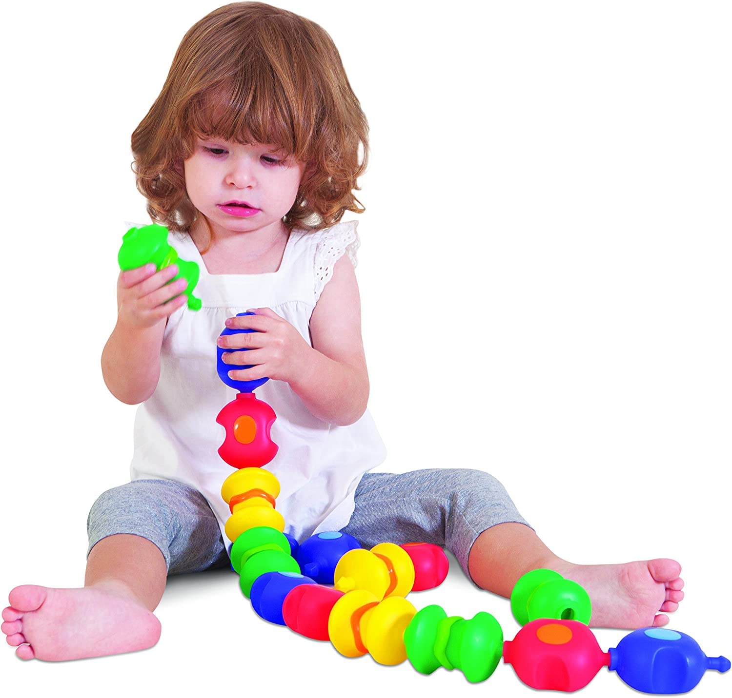 Kreativität fördern war nie so einfach! Mit diesen 30 bunten Steckperlen von Edushape entdecken Kinder spielerisch Farben und Formen. Die extra-großen Teile aus weichem Kunststoff sind perfekt für kleine Hände und lassen sich einfach zusammenstecken. So entstehen die verrücktesten Ketten und Gebilde - der Phantasie sind keine Grenzen gesetzt! Das Relief-Design fühlt sich nicht nur interessant an, sondern fördert auch den Tastsinn. Perfekt für Kinder im Kindergartenalter: Verbessert die Motorik, die Hand-Auge-Koordination und das logische Denken. Die kräftigen Farben regen die visuelle Wahrnehmung an. Besonders praktisch: Die Teile sind robust und leicht zu reinigen. Ob alleine oder mit Freunden - hier entstehen immer neue Kreationen. Perfektes Geschenk für Geburtstage, Weihnachten oder einfach als Überraschung. Pädagogisch wertvoll und macht dazu noch riesig Spaß! Für Jungen und Mädchen gleichermaßen geeignet. Die Steckperlen sind übrigens auch super für unterwegs - leicht, platzsparend und immer für Abwechslung gut. Lernspielzeug das wirklich begeistert!