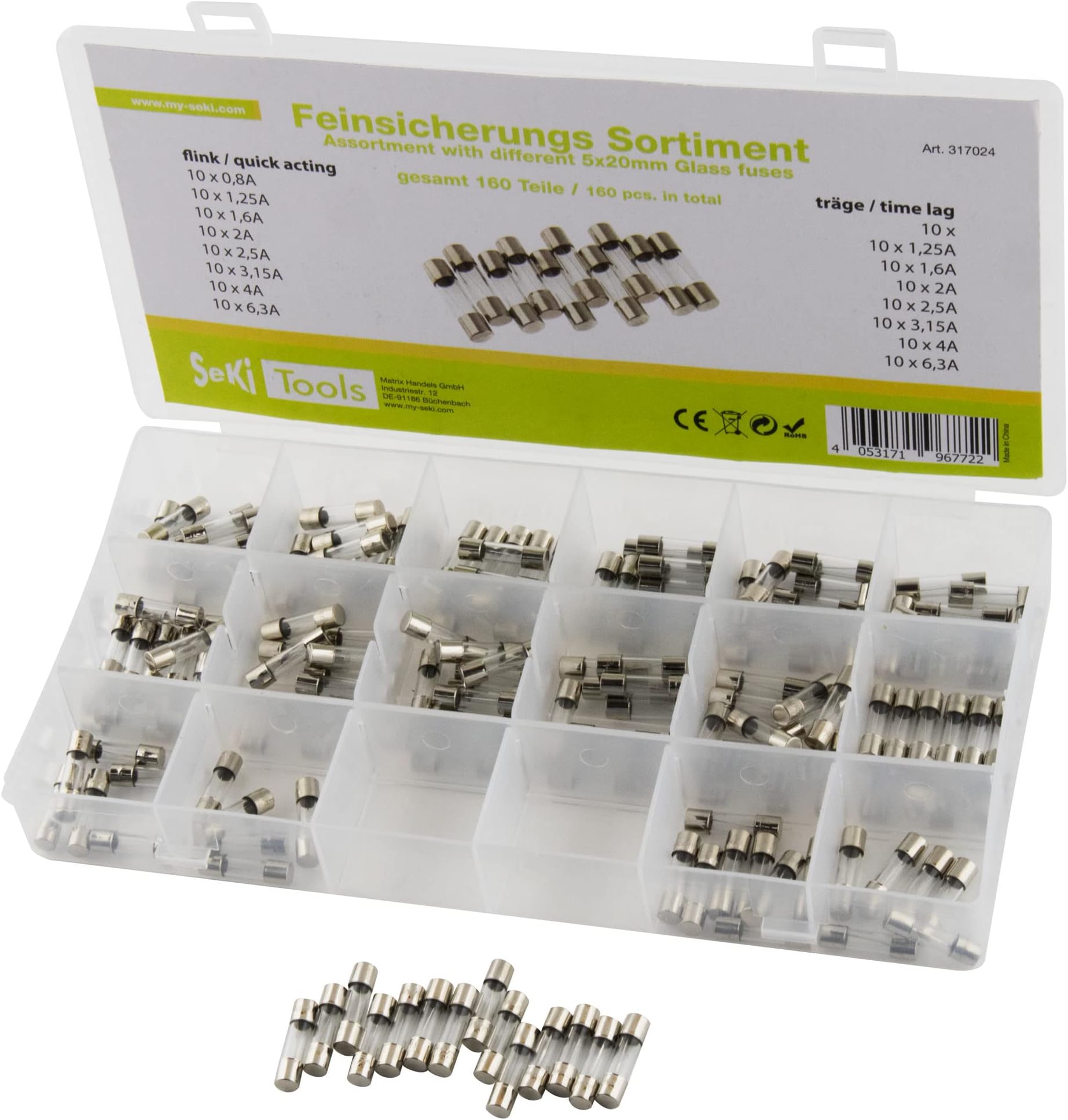 Umfangreiches Sicherungs-Sortiment von BOJACK! Enthält satte 300 Stück Glas-Sicherungen in 15 verschiedenen Werten von 0,1A bis 20A. Alle im Standard-Format 5x20mm und für 250V ausgelegt. Jeder Wert ist 20x vorhanden - von 0,1A, 0,2A, 0,25A, 0,5A über 1A, 1,5A, 2A, 3A, 4A, 5A bis 8A, 10A, 12A, 15A und 20A. Super praktisch verpackt in einer transparenten Kunststoffbox mit separaten Fächern für jede Größe. Perfekt für die Werkstatt, Elektroinstallationen oder als Vorrat für alle Fälle. Einfach ein must-have für jeden der mit Elektronik zu tun hat!