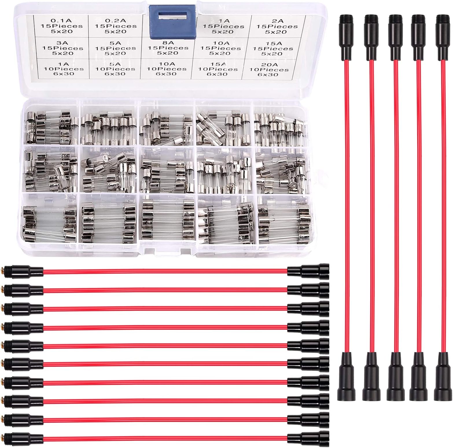 BOJACK Glas Sicherungen Set 300 Stück - 15 Werte 5x20mm 250V In Kunststoffbox
