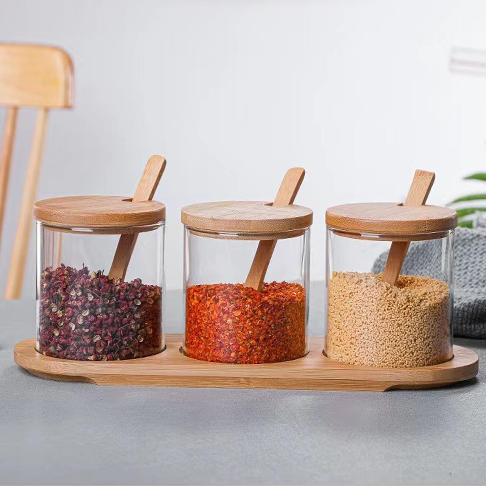 FülleMore Gewürzglas 300ml - Borosilikatglas Mit Bambusdeckel & Holzlöffel