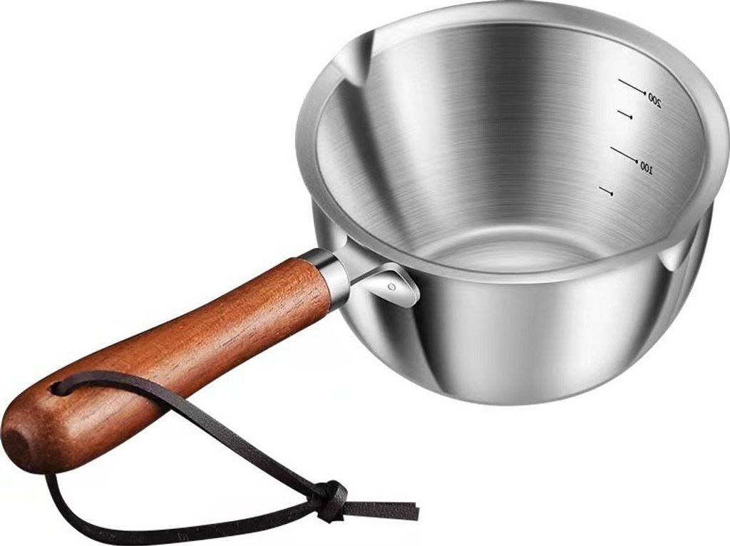 Dieser kleine Topf ist ein echter Alleskönner in der Küche! 300ml Fassungsvermögen - perfekt für kleine Mengen. Aus hochwertigem Edelstahl - rostfrei und langlebig. Funktioniert auf ALLEN Herden: Induktion, Gas, Elektro - einfach universell! Mit praktischem Holzgriff - bleibt kühl und liegt gut in der Hand. Perfekt zum Butter schmelzen, Saucen erwärmen, Milch aufkochen oder Schokolade schmelzen. Der abgerundete Rand gießt tropffrei - keine Sauerei auf dem Herd! Loch im Griff zum Aufhängen - platzsparende Aufbewahrung. Auch in 150ml, 400ml und 500ml verfügbar - für jeden Bedarf die richtige Größe. Achtung: Wird heiß beim Kochen - immer vorsichtig handhaben! Von Hand spülen - so bleibt der Holzgriff schön. Ein Küchenhelfer, den man einfach lieben muss - praktisch, schön und unverwüstlich!