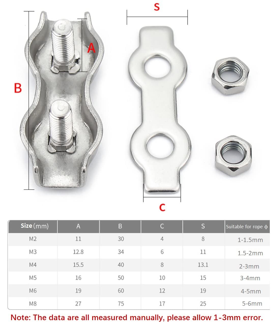 M3 Duplex Seilklemmen 304 Edelstahl - 10 Stück Für 3mm Drahtseile