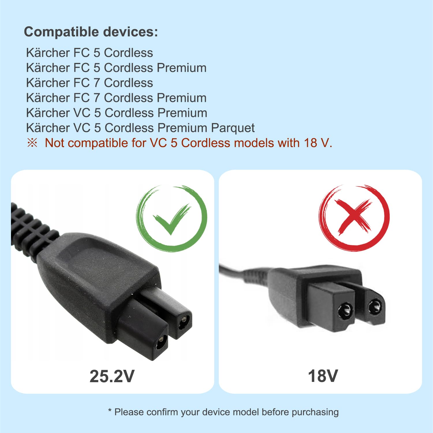 Hey, suchen Sie ein zuverlässiges Ladegerät für Ihren Kärcher Staubsauger? Dieses 30V/600mA Netzteil ist die ideale Lösung für FC7, VC5 und weitere kabellose Kärcher-Modelle! ✨\n\nTechnische Daten im Überblick:\n• Eingang: AC 100-240V 50-60Hz (weltweit einsetzbar)\n• Ausgang: DC 30V 600mA 18W\n• Kabellänge: 1,8 Meter - praktisch für jeden Einsatzort\n• Farbe: Schwarz - dezent und unauffällig\n\nDas Besondere: Dieses Ladegerät bietet umfassenden Schutz vor Überlastung, Kurzschluss und Überhitzung. Mit dem intelligenten Chip-System wird Ihr Gerät immer sicher geladen. Das hochwertige Kupferkabel garantiert eine stabile Spannung und lange Lebensdauer.\n\nKompatibel mit: Kärcher 6.195-069.0, FC 5 Cordless, FC 5 Cordless Premium, FC 7 Cordless Premium, VC 5 Cordless Premium und vielen mehr!\n\nWichtig: Bitte vor dem Kauf prüfen, ob die Ausgangsspannung und der Stecker zu Ihrem Gerät passen. Nicht alle Modelle sind kompatibel - aber für die genannten Kärcher Staubsauger ist es perfekt!\n\nWarum dieses Ladegerät? Es ist leichter, sicherer und effizienter als viele Original-Netzteile - und dazu noch günstiger! Perfekt für alle, die ihr Kärcher-Gerät immer einsatzbereit halten wollen. 💪\n\nLieferumfang: 1 x Ladegerät mit europäischem Stecker - sofort einsatzbereit!