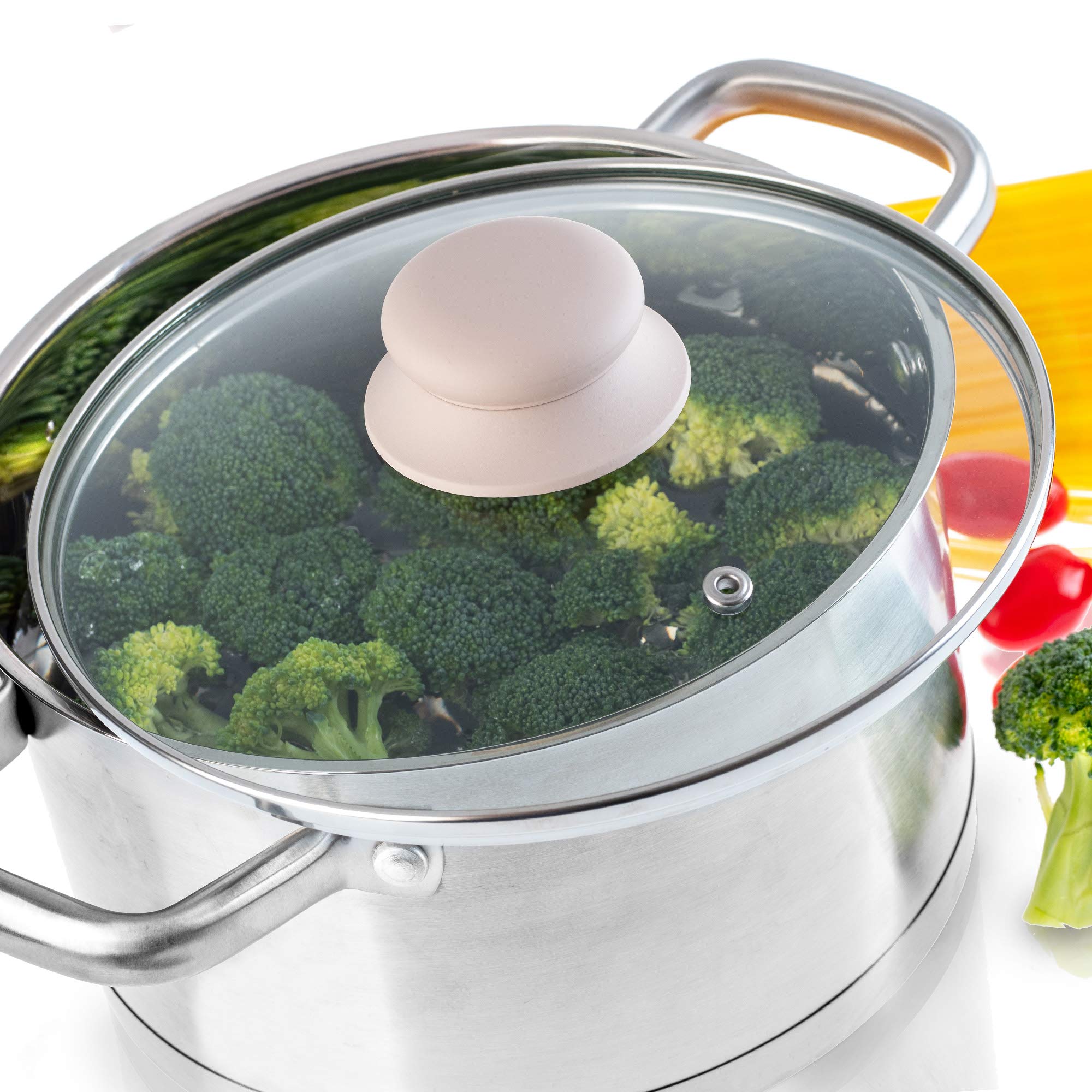 Honseadek Topfdeckel 30cm - 304 Edelstahl Mit Glas | Hitzebeständiger Silikongriff
