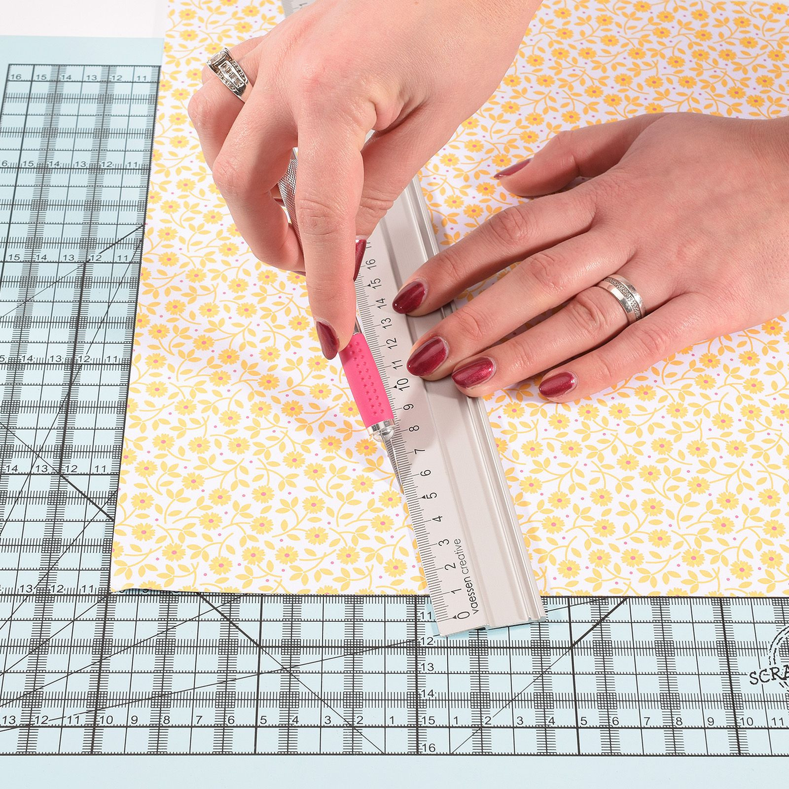 Achtung alle Bastler und Kreativen! Dieses Metall-Lineal von Vaessen ist ein echter Game-Changer. Mit 30cm Länge aus robustem Aluminium und dem genialen Fingerschutz - da passiert nichts mehr beim Schneiden!\n\nDie 2cm hohe Faltkante klappst du einfach hoch und deine Finger sind sicher. Super praktisch, oder? Und auf der Rückseite ist eine Anti-Rutsch-Matte - das Lineal verrutscht nicht mehr, selbst bei dünnem Papier oder Karton.\n\nEgal ob du Scrapbooking machst, Grußkarten gestaltest, im Büro arbeitest oder einfach nur genau messen willst - dieses Lineal ist dein perfekter Partner. Die schwarze Skala ist gut lesbar und das Aluminium liegt super in der Hand.\n\nFür Links- und Rechtshänder gleichermaßen geeignet. Ob Papercraft, Bullet Journaling oder technische Zeichnungen - damit machst du immer eine gute Figur. Und es hält ewig! Also weg mit diesen billigen Plastiklinealen - hier kommt Qualität made in Germany.\n\nWichtig: Nicht für Kinder unter 3 Jahren - wegen verschluckbarer Kleinteile. Aber für alle anderen: Das Must-have für jeden, der präzise arbeiten will!