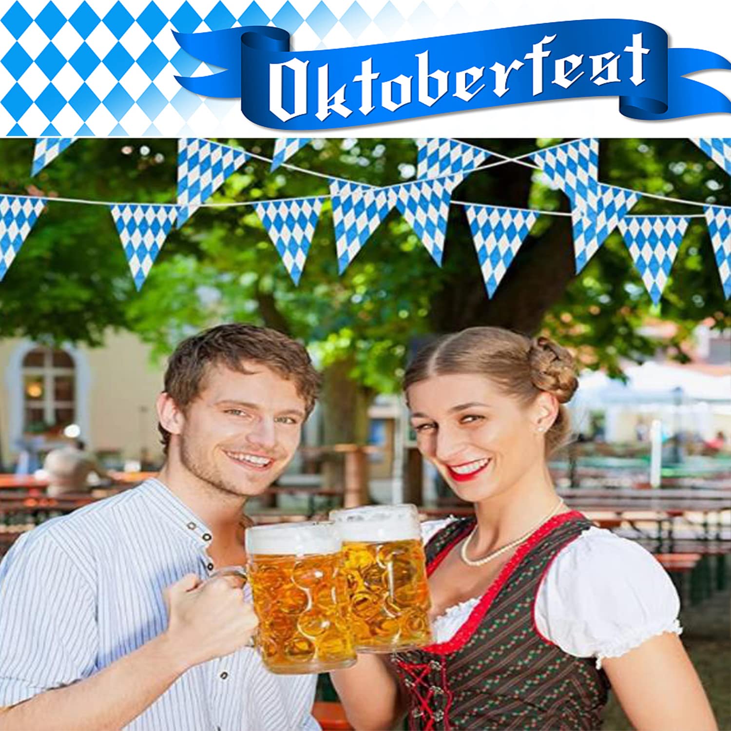 Oktoberfest Wimpelkette 30m - 3x10m, Blau/Weiß, 20x30cm Fahnen, Für Innen & Außen