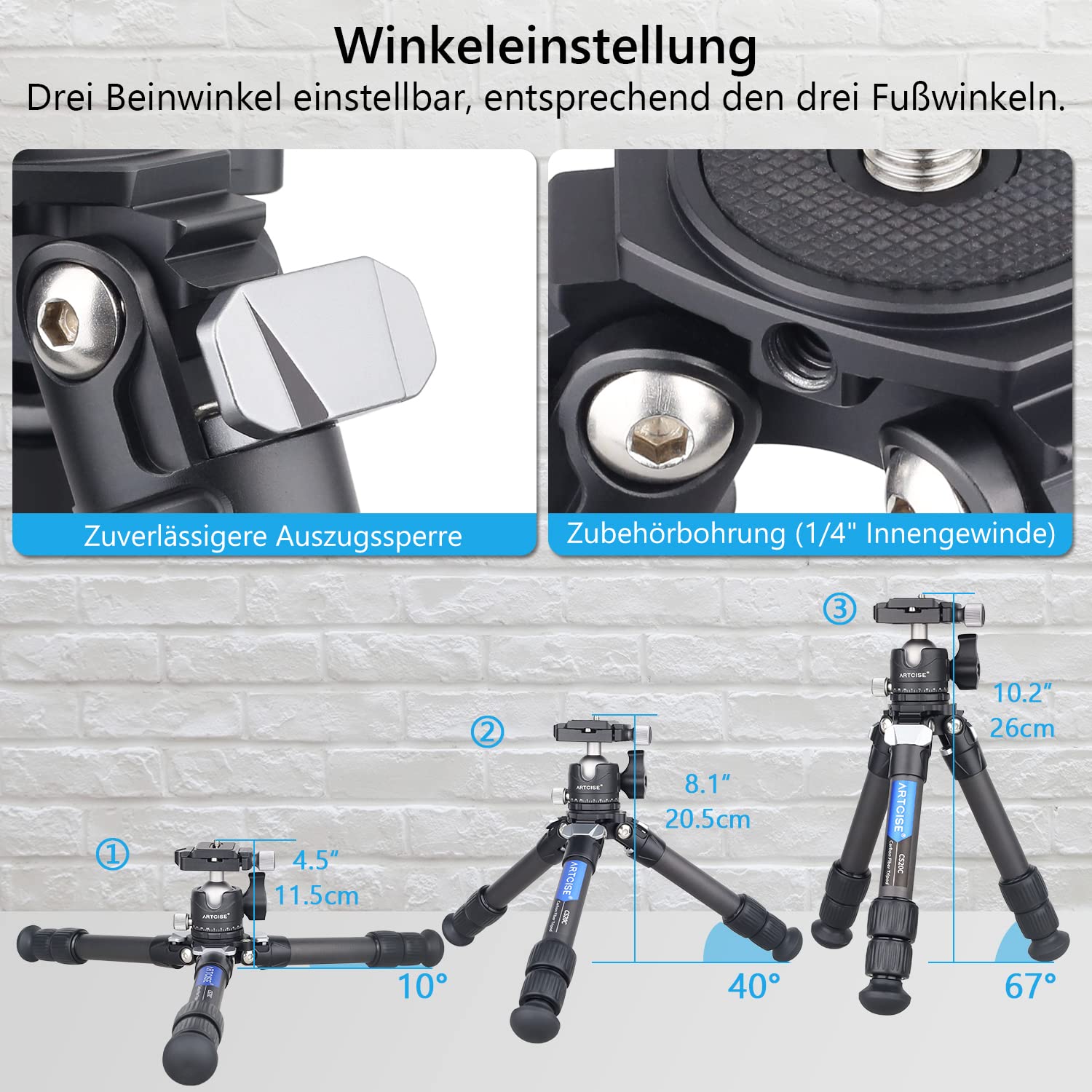 Wow, dieser ARTCISE Stativkopf ist ein echter Profi! Aus komplett Metall mit 30mm Kugeldurchmesser - super stabil und präzise! Trägt bis zu 10kg - also auch für schwere DSLR-Kameras geeignet! Low Profile Design mit niedrigem Schwerpunkt - extra stabil auch in großer Höhe! Mit ergonomischem Einstellknopf - auch bei langen Shooting-Tagen keine müden Hände! Schnellwechselplatte mit 1/4 Zoll Gewinde - Kamera blitzschnell montiert und demontiert! Unten 3/8 Zoll Anschluss plus 3 Adapter-Schrauben - passt an fast jedes Stativ! CNC-gefräst und oxidiert - läuft super smooth! Perfekt für Fotografen, Videografen und Content-Creator! Einfach aufs Stativ, Kamera drauf und perfekte Aufnahmen machen!