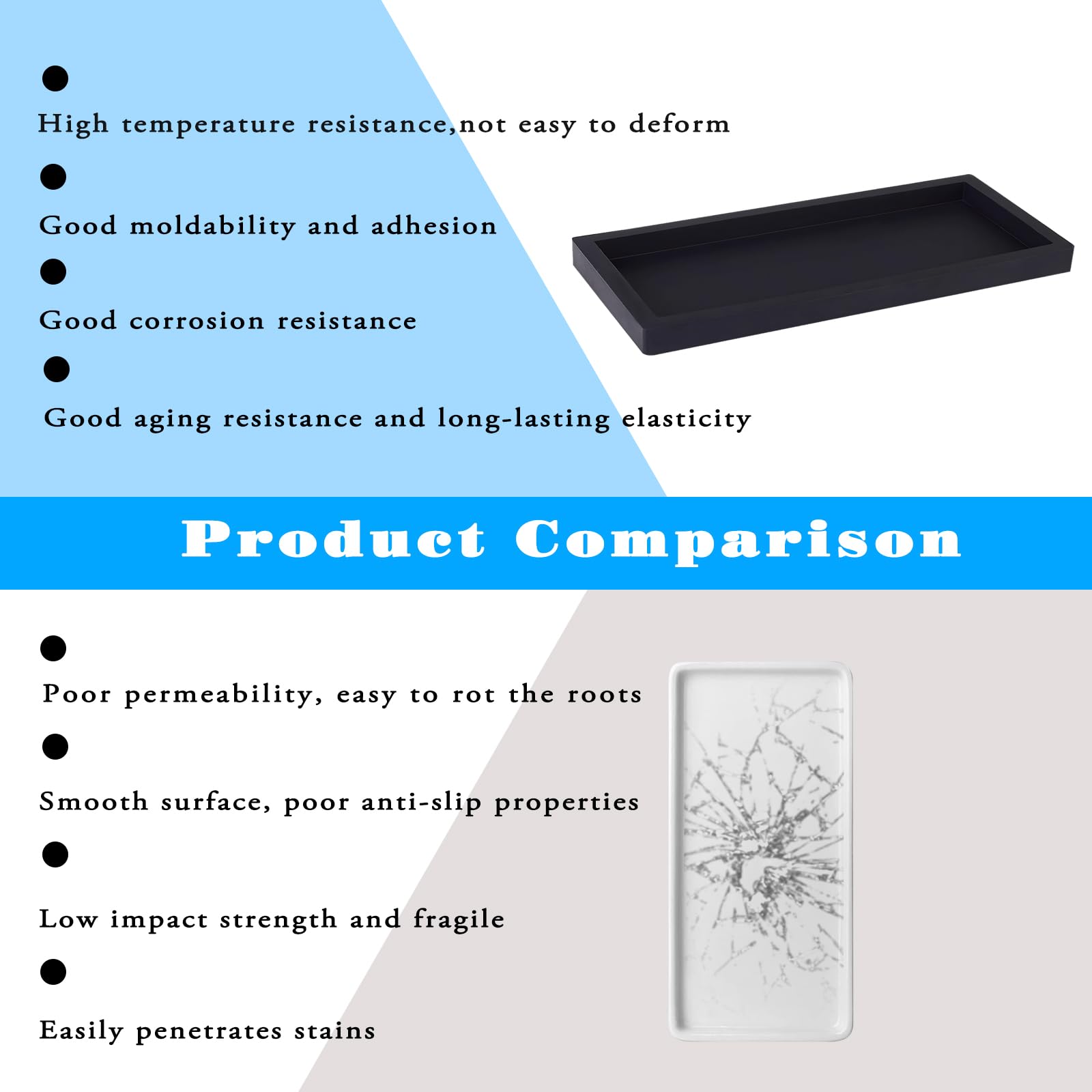 Ordnung und Stil für dein Badezimmer! Dieses elegante Silikon-Tablett in schwarzer Marmorierung ist der perfekte Organizer für Seife, Schmuck, Schlüssel und Kosmetik. Aus hochwertigem, bruchsicherem Silikon gefertigt, liegt es rutschfest auf der Unterlage und verzieht sich nicht. Die wasserfeste Oberfläche ist spülmaschinengeeignet und resistent gegen Verfärbungen. Mit den Maßen 30x15x2cm bietet es reichlich Platz, ohne zu viel Raum einzunehmen. Das moderne Design passt zu jedem Einrichtungsstil und macht das Tablett zur idealen Aufbewahrungslösung für Bad, Küche oder Schminktisch. Leicht zu reinigen und ein echter Hingucker - so bringst du Ordnung in deine vier Wände!