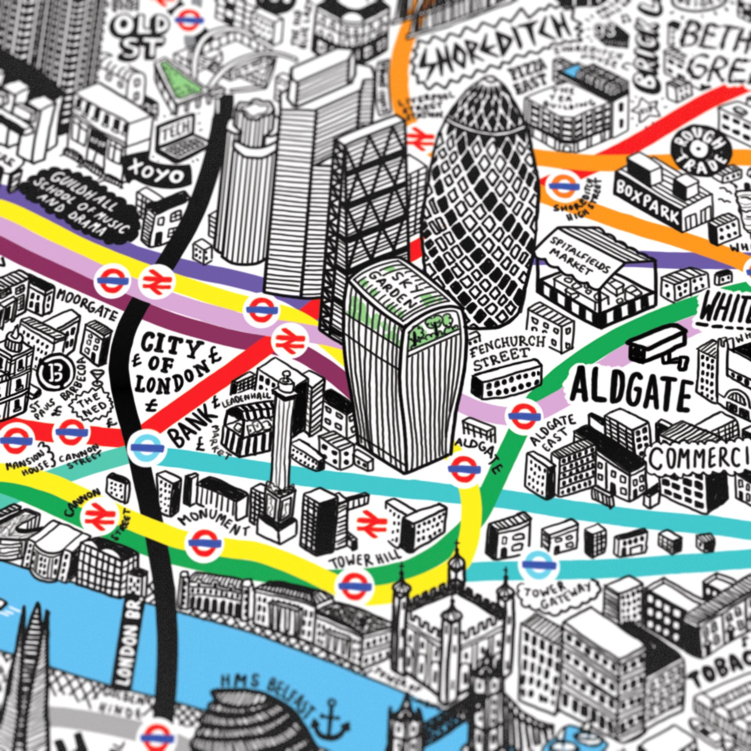 O3 Design London Papierkunst - 30x30cm Weiße 3D Karte Von London Sehenswürdigkeiten
