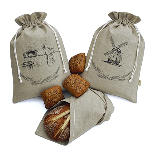 3er Set Leinen Brotbeutel 30x40cm - Frischhaltebeutel Für Brot