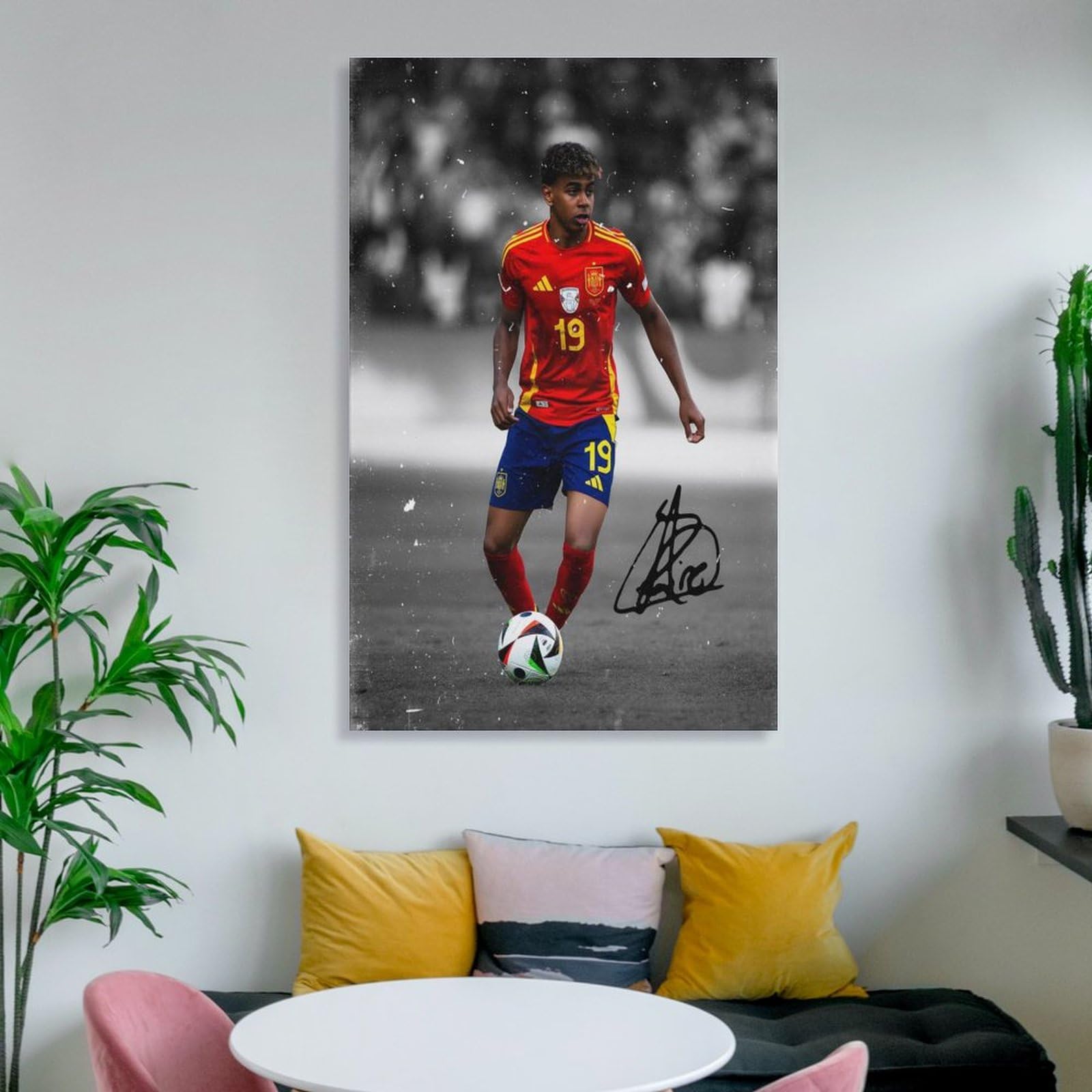 Bring Farbe und Persönlichkeit in deine vier Wände mit diesem hochwertigen Lamine Yamal Wandposter! Mit 30x45cm Maßen ist es die perfekte Größe für jeden Raum. Das Besondere: Die Oberfläche ist wasserfest und schmutzabweisend - ideal für Küche, Bad oder Kinderzimmer. In brillanten HD-Farben auf dickem Papier gedruckt, das sich leicht reinigen lässt. Ungerahmt geliefert, damit du es ganz nach deinem Geschmack rahmen kannst. Perfekt für Wohnzimmer, Schlafzimmer, Büro oder auch für Schulen und Fitnessstudios. Ob als Geschenk für Freunde, Familienmitglieder oder einfach zur Verschönerung der eigenen Wände - dieses Poster verleiht jedem Raum eine individuelle Note. Einfach aufhängen und sofort wirkt dein Zuhause lebendiger und einladender. Zeig deinen Stil und kreier deine persönliche Wohlfühl-Atmosphäre!