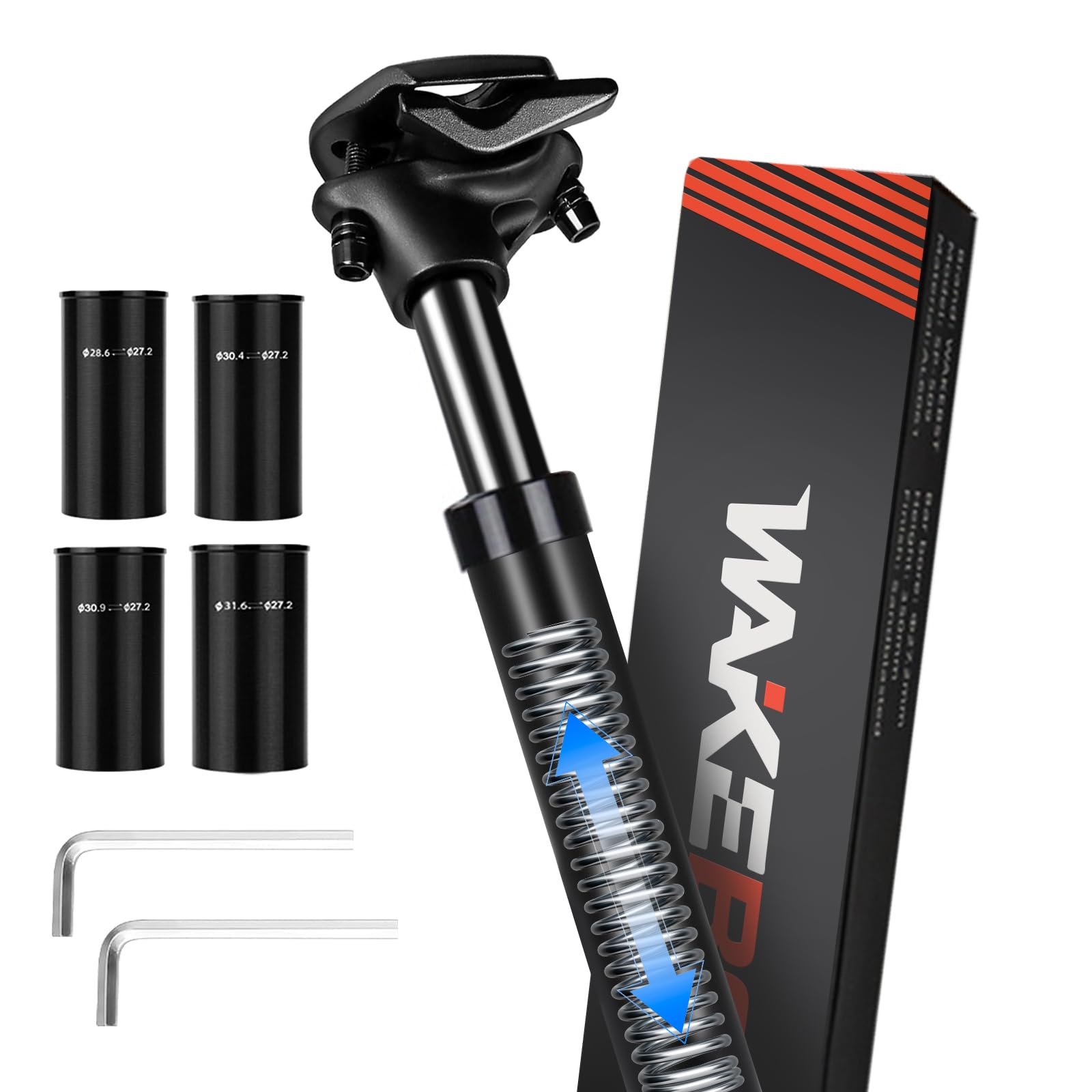 Schluss mit holprigen Fahrten! Diese gefederte Sattelstütze von Wothfedert jeden Stoß weg für ultimativen Komfort. Universell mit Adaptern für 27,2, 30,9 und 31,6mm - passt an fast jedes Fahrrad! Aus robuster Aluminium-Legierung mit eloxierter Oberfläche. Zwei Federn inklusive: 2,8mm für 40-80kg, 3,0mm für 80-120kg. Federstärke und Sattelwinkel verstellbar - individuell anpassbar! Perfekt für E-Bike, MTB, Citybike - reduziert Rücken- und Wirbelsäulenschmerzen. Einfache Montage - mit Inbusschlüssel in Minuten installiert. Mach jede Fahrt zur Wohlfühl-Tour! Für alle die Komfort und Performance lieben.