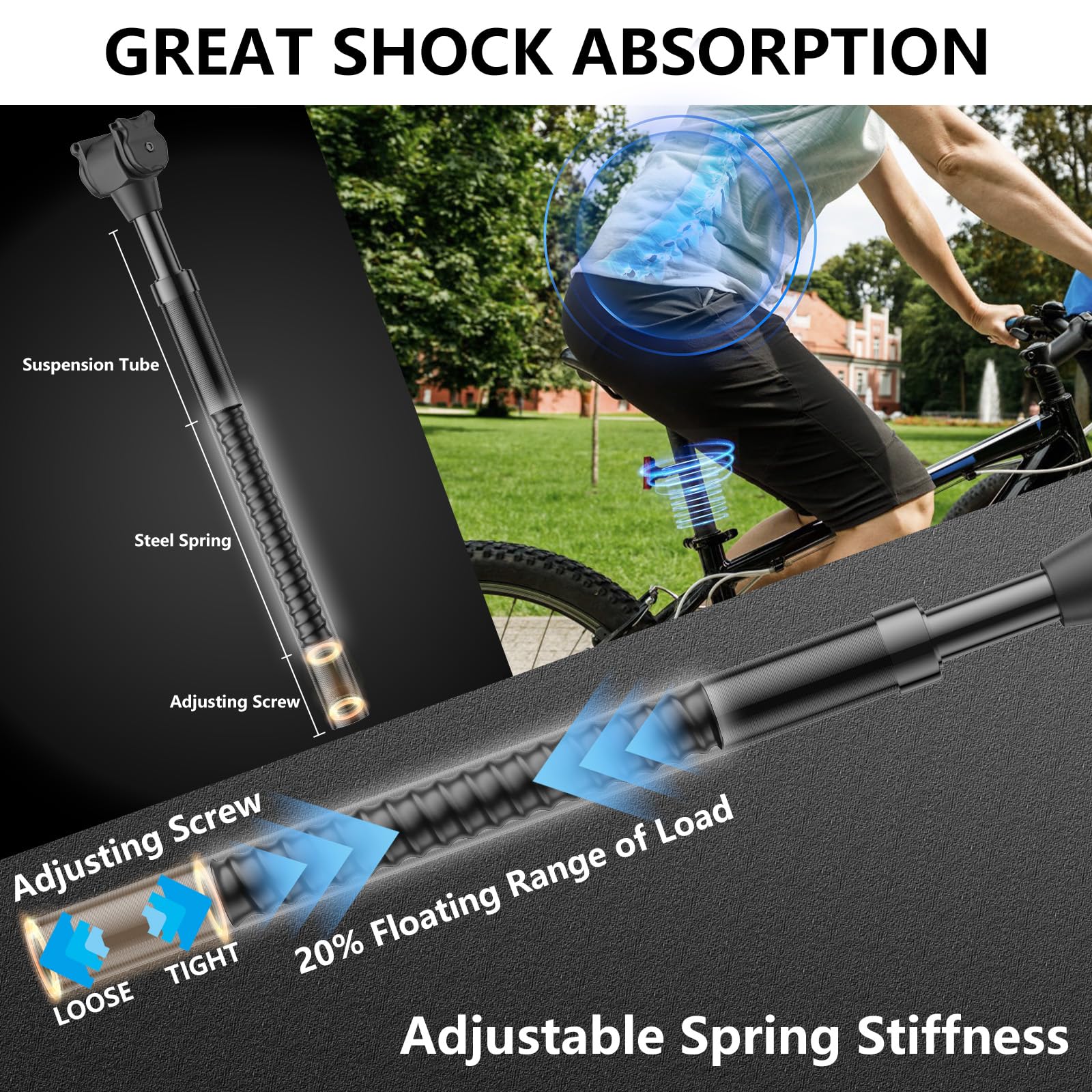 Wothfav Gefederte Sattelstütze - 27,2/30,9/31,6mm Für E-Bike MTB Alle Fahrräder