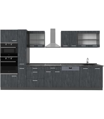 Komplettküche 310 Cm Küchenzeile - Inklusive Elektrogeräte Schiefer Grau