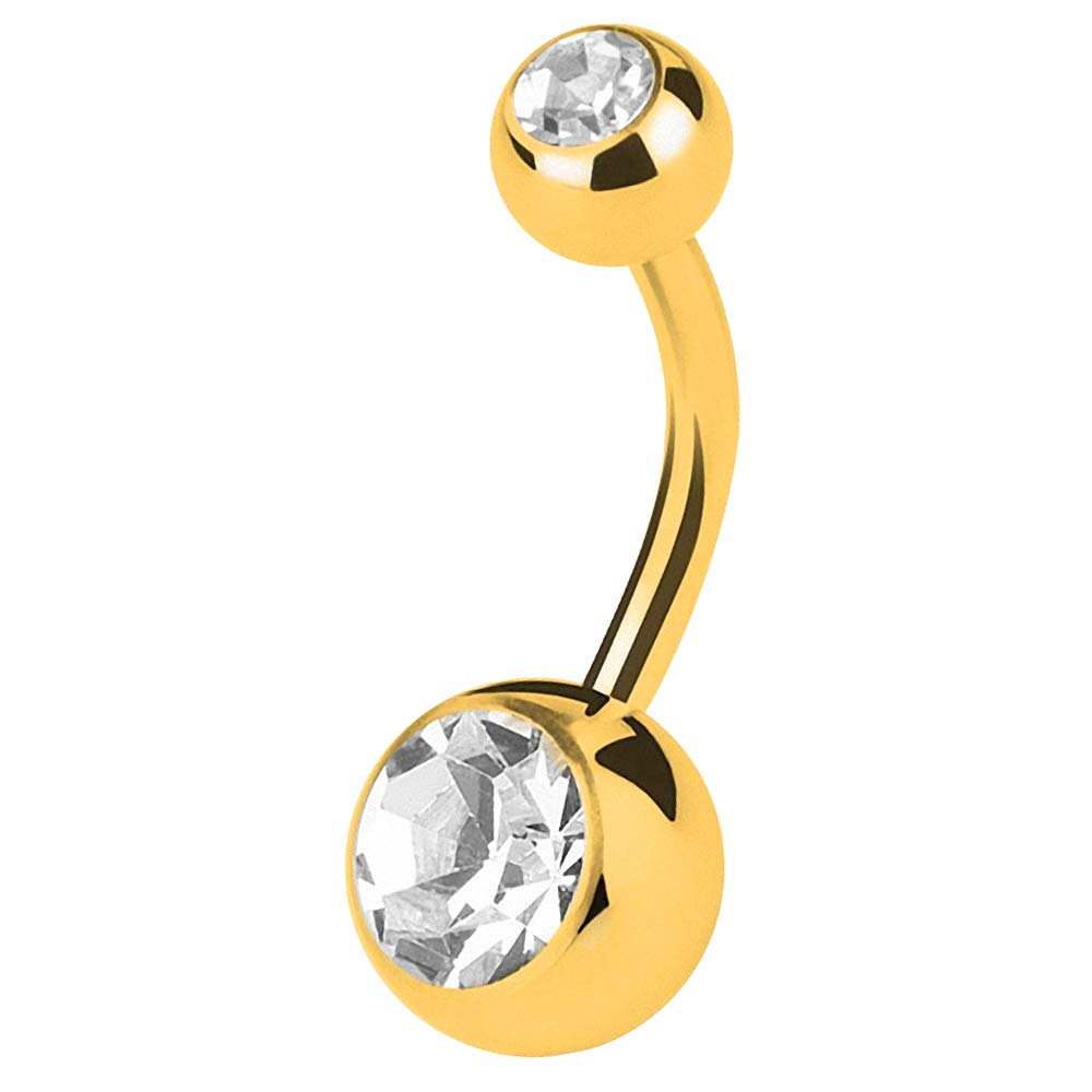 Bauchnabelpiercing Banane 316L Stahl - Mit Doppel Kristall Kugel