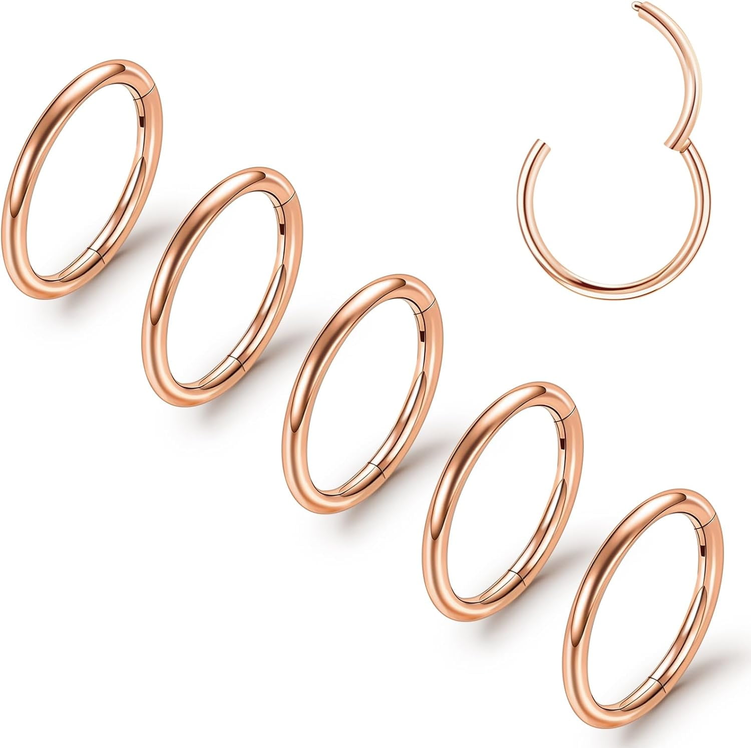 OUFER Black Nose Rings 316L Steel - 20G Hinged Clicker 6/7/8mm Halloween