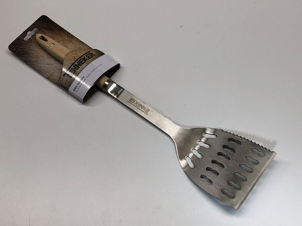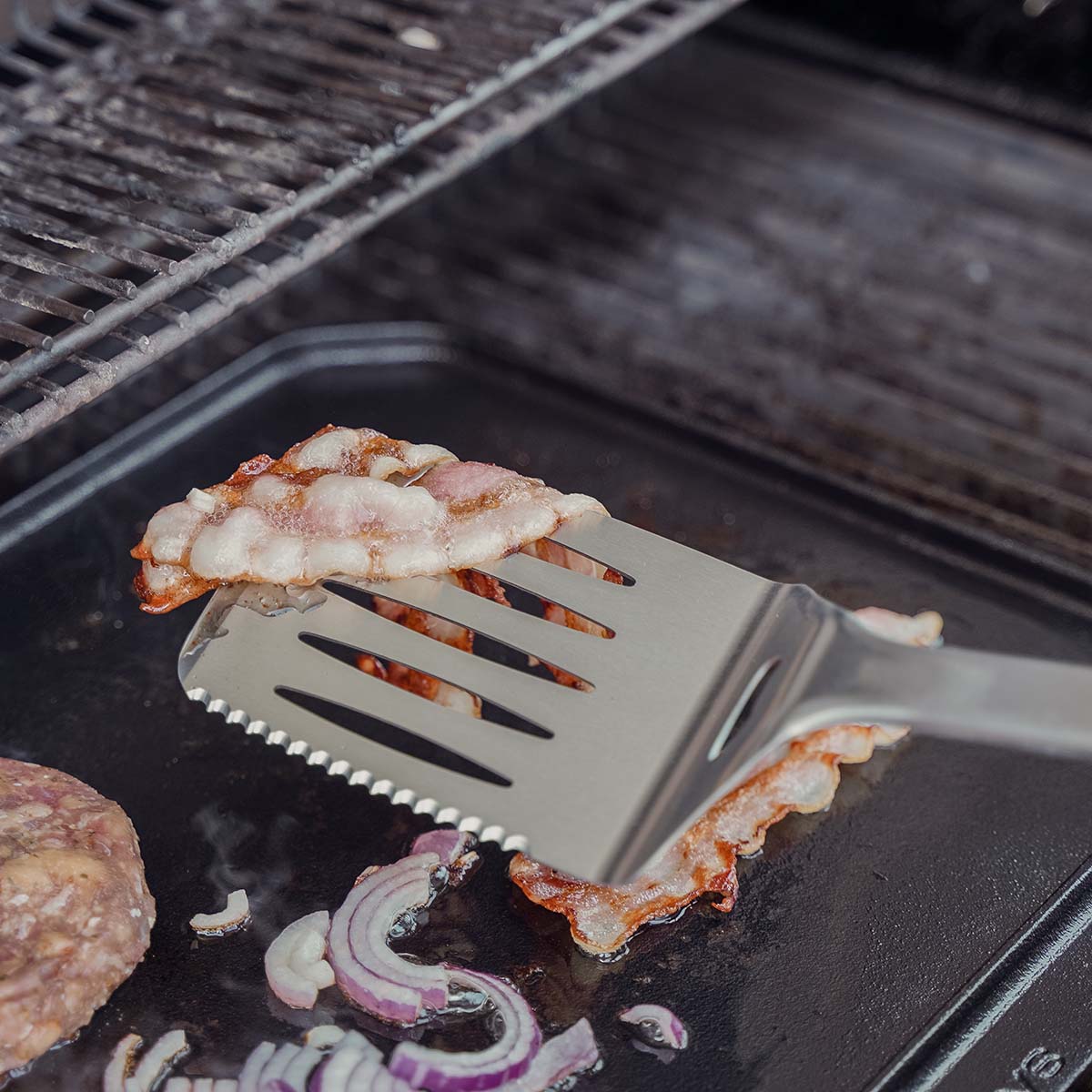 Der perfekte Begleiter für deine Grillsaison! Dieser massive Grillwender von GRILLHOME aus stabilem Edelstahl ist mit 32,5cm Gesamtlänge ideal für Steaks, Burger und andere Grillköstlichkeiten. Mit einer starken 1,5mm Materialstärke und einem angenehmen Kunststoffgriff (ca. 2cm dick) liegt er super in der Hand. Die Wenderfläche von ca. 12x10cm ist groß genug für die meisten Grillspieße und Bratlinge. Die speziell angeschliffene Kante macht das Wenden zum Kinderspiel - selbst unter schweren Steaks kein Problem. Mit einem Gewicht von etwa 212 Gramm fühlt sich der Wender wertig an, ohne zu schwer zu sein. Die praktische Öse zum Aufhängen sorgt für ordentliche Aufbewahrung. Ob für den Gasgrill, Holzkohlegrill oder Elektrogrill - dieser Wender ist ein echter Allrounder für jeden Grillfan. Einfach reinigen und nach der Saison gut verstauen. Ein qualitativ hochwertiges Grillzubehör, das viele Grillsaisons überdauern wird. Zeit für das nächste Grillfest!