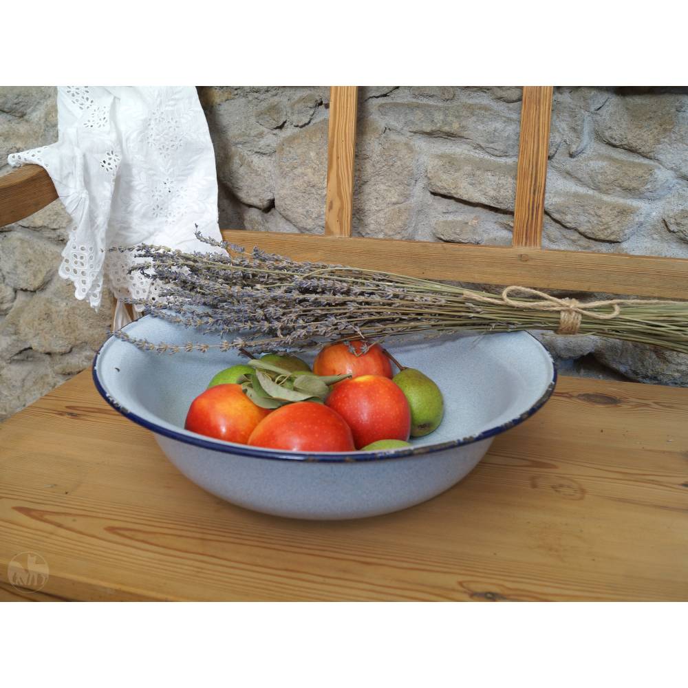 Diese süße Emaille-Schüssel im Vintage-Look ist ein echter Alleskönner! 32cm Durchmesser, weiß mit blauem Rand - total zeitlos. Perfekt für Fußbäder, Gesichtwaschen, Wäsche oder sogar als Salat- oder Suppenschüssel in der Küche. Aus robustem Emaille, hält ewig und ist super leicht zu reinigen. Die glatte Oberfläche verhindert Ablagerungen, bleibt immer hygienisch sauber. Passt in jedes Badezimmer oder Küche und verleiht dem Raum diesen besonderen Retro-Charme. Einfach praktisch und sieht dabei noch mega gut aus! Ein echter Klassiker, der nie aus der Mode kommt.