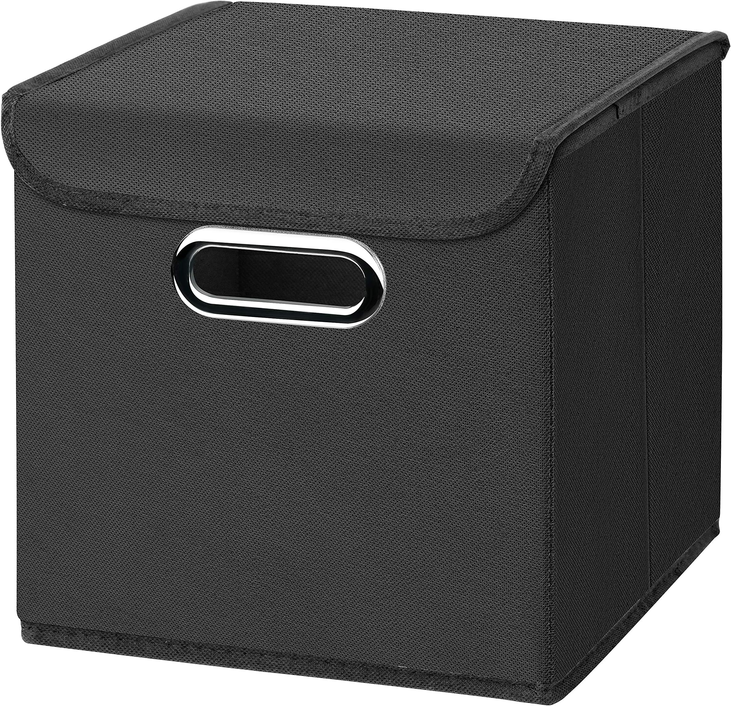 Besonderes Feature: Die Metallöse an der Vorderseite! So kannst du die Box auch aus vollgestopften Regalen einfach herausziehen. Mit Deckel bleibt der Inhalt staubfrei und ordentlich.