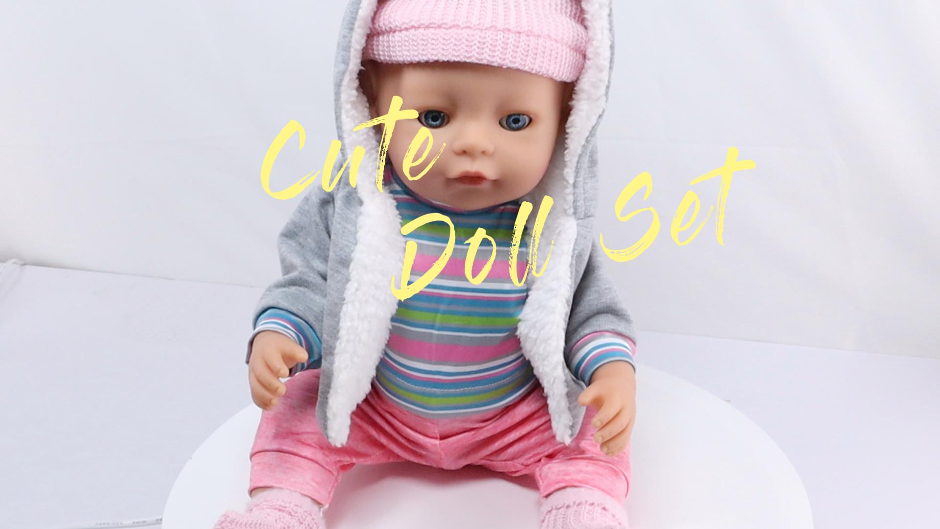 Oh wie süß! Dieses 4-teilige Puppen-Outfit ist perfekt für alle Babypuppen von 35-43cm (14-18 Zoll). Im Set enthalten: Oberteil, niedliche Latzhose, gestrickte Mütze und Socken - alles farblich aufeinander abgestimmt.