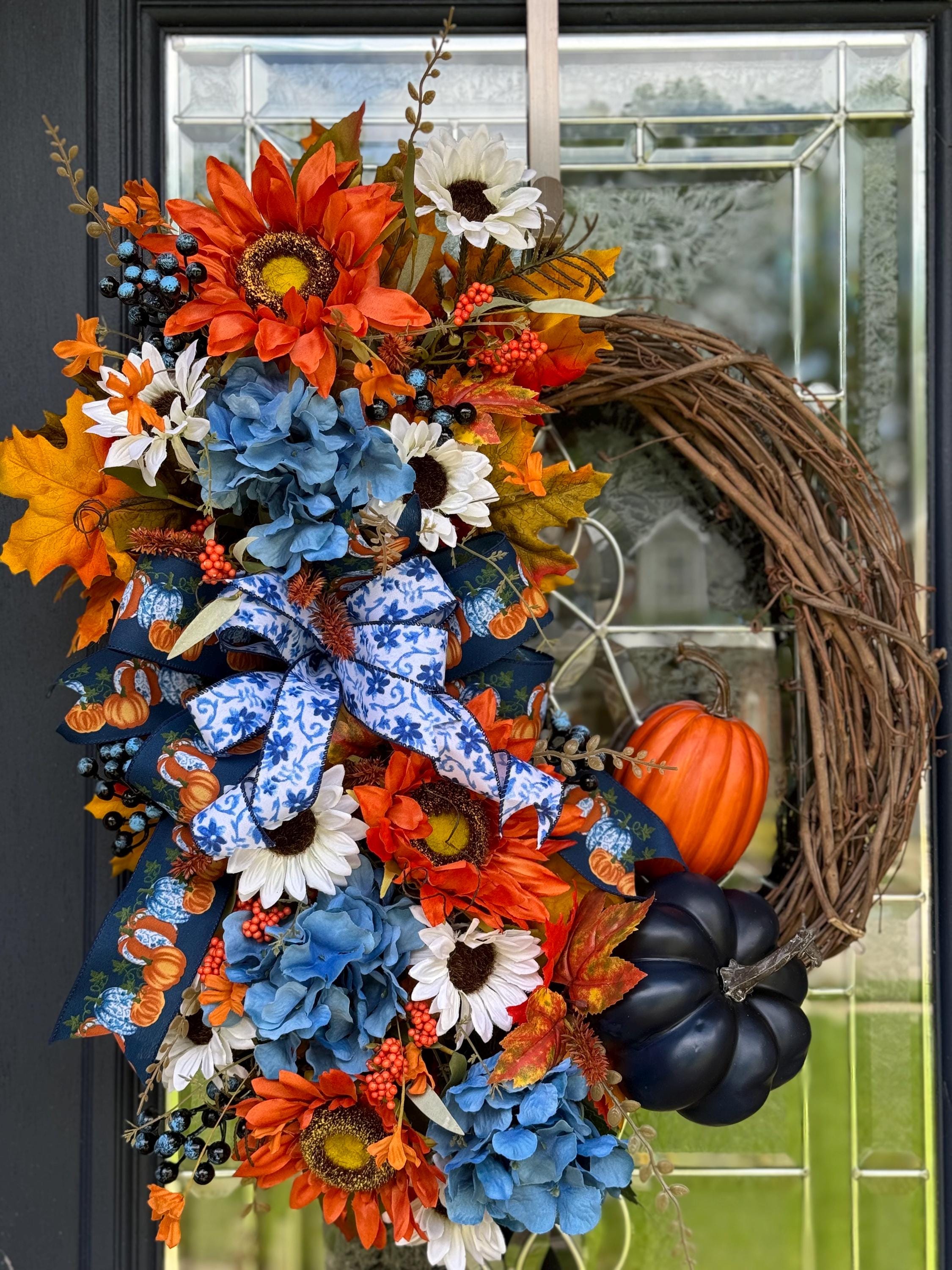 Dieser wunderschöne Herbstkranz bringt sofort gemütliche Stimmung an deine Haustür! Mit lebensechten weißen Kürbissen, herbstlichen Ahornblättern, Beeren und Eukalyptus in einem perfekten Kreis-Design sieht er einfach klasse aus. Aus langlebigem Kunststoff gefertigt, hält er auch draußen problemlos stand ohne zu verblassen - also perfekt für deine Haustür, den Garten oder als Deko im Wohnzimmer! Der integrierte Aufhänger macht die Montierung super einfach: Einfach aufhängen und sofort die herbstliche Atmosphäre genießen! Ideal für Halloween-Partys, Erntedankfest oder einfach als jahreszeitliche Dekoration. Mit 35x35 cm Größe ist er auffällig ohne zu übertrieben zu wirken. Einfach perfekt, um deinem Zuhause diesen besonderen herbstlichen Charme zu verleihen - deine Gäste werden begeistert sein!
