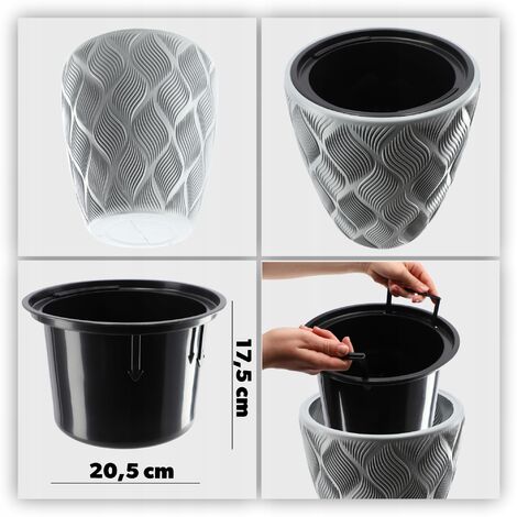 Smart gardening war noch nie so einfach! Dieser praktische Pflanzkübel-Einsatz aus stabilem Kunststoff macht das Umtopfen zum Kinderspiel. Mit 34,5x28cm Größe passt er perfekt in viele Standard-Pflanzkübel. Die praktischen Tragegriffe erleichtern das Herausnehmen und Umstellen - super wenn du deine Pflanzen mal woanders hinstellen willst. Spart Erde und Gewicht, schützt dabei den teuren Übertopf vor Feuchtigkeit und Schmutz. Die schwarze Farbe ist dezent und unauffällig. Mit Drainage-Bereichen gegen Staunässe - deine Pflanzenwurzeln bekommen genug Luft. Wetterfest für drinnen und draußen, hält auch Frost stand. Einfach reinsetzen, bepflanzen und sich über gesündere Pflanzen und weniger Aufwand freuen!