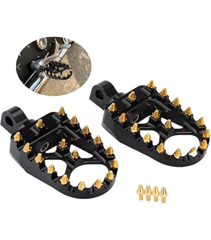 Hey Harley-Fans! Diese Fußrasten bringen richtig Style auf deine Maschine. Im coolen Chopper/Bobber-Design und goldfarben eloxiert sehen sie einfach nur krass aus. Das 360-Grad-Drehgelenk ist der Hammer - du kannst die Rasten in jeden erdenklichen Winkel stellen und findest so die perfekte, bequemste Position für deine Füße. Aus super-stabilem 7075-T6 Aluminium gefertigt, halten die Teile über 600 kg Druck aus - also absolut verlässlich. Die scharfen Zähne aus gehärtetem Stahl geben dir bombenfesten Halt, selbst bei nassen Schuhen oder stärkeren Vibrationen. Mit 57mm Breite und 88mm Länge bieten sie eine extra große Auflagefläche für mehr Komfort auf langen Touren. Passen für die meisten Harley Modelle mit 9mm Stift-Aufnahme - Dyna 1993-2017, Fatboy 1990-2017, Iron 883 2009-2017 und Sportster 883. Einfach montieren, Winkel einstellen und ab geht die Fahrt mit noch mehr Fahrkomfort!