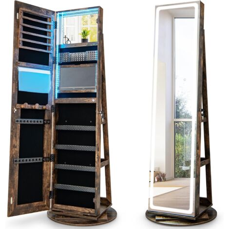 LED Schmuckschrank Mit Gewellt Spiegel 159cm - 360° Drehbar Mit 3 Regalen & Häkchen