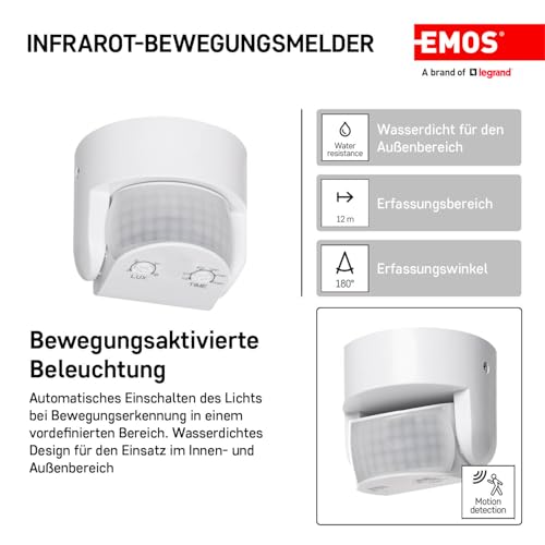 EMOS Mini Infrarot-Bewegungsmelder - 360° Erfassung, 6m Reichweite, Für Innenbereich